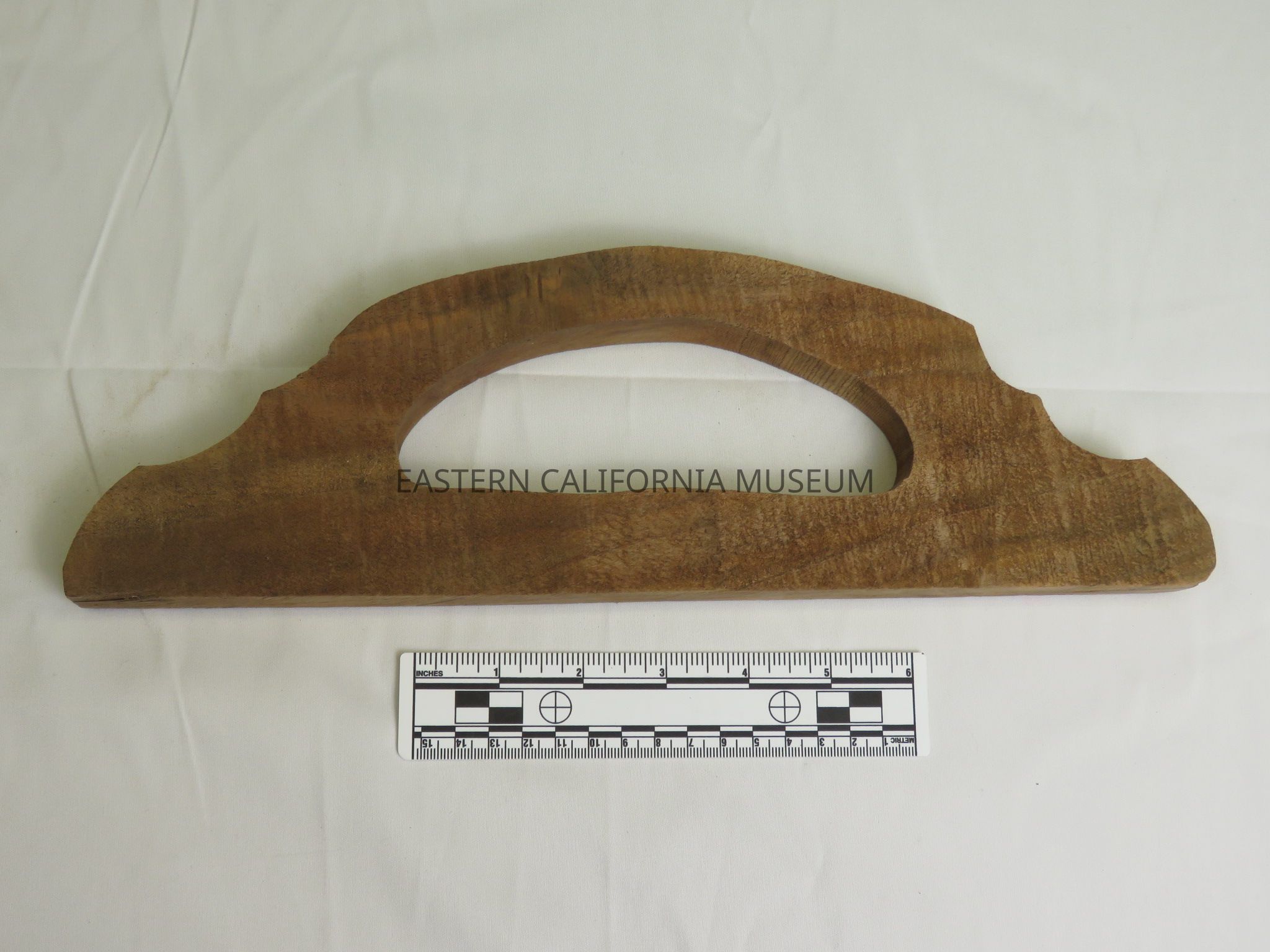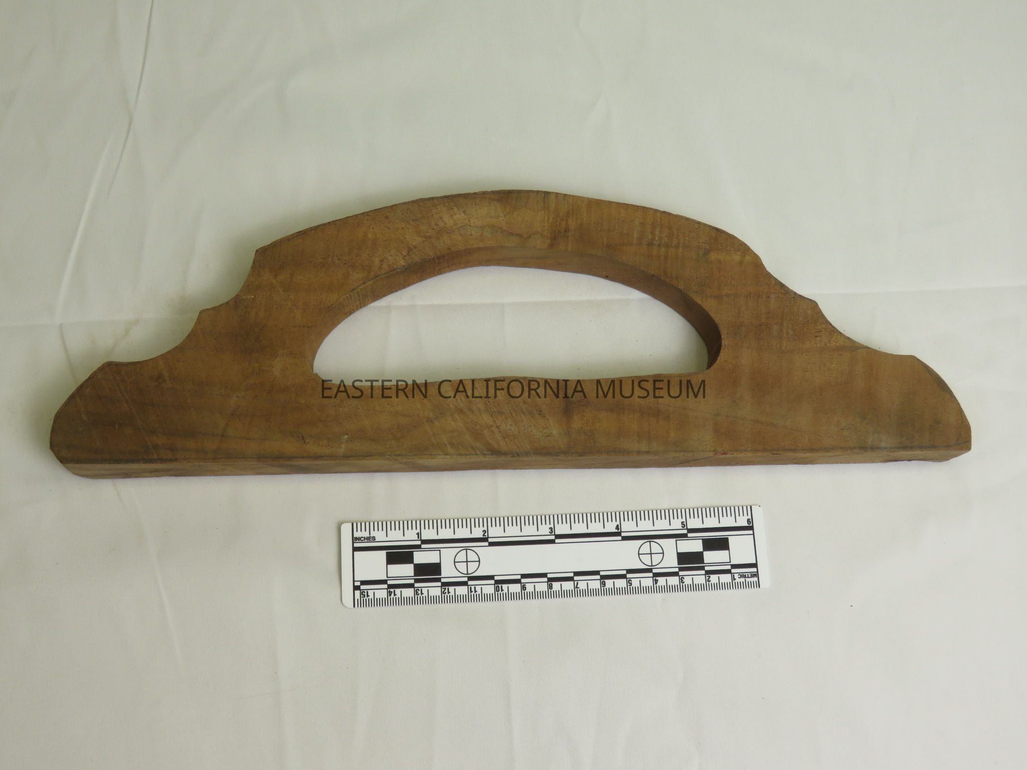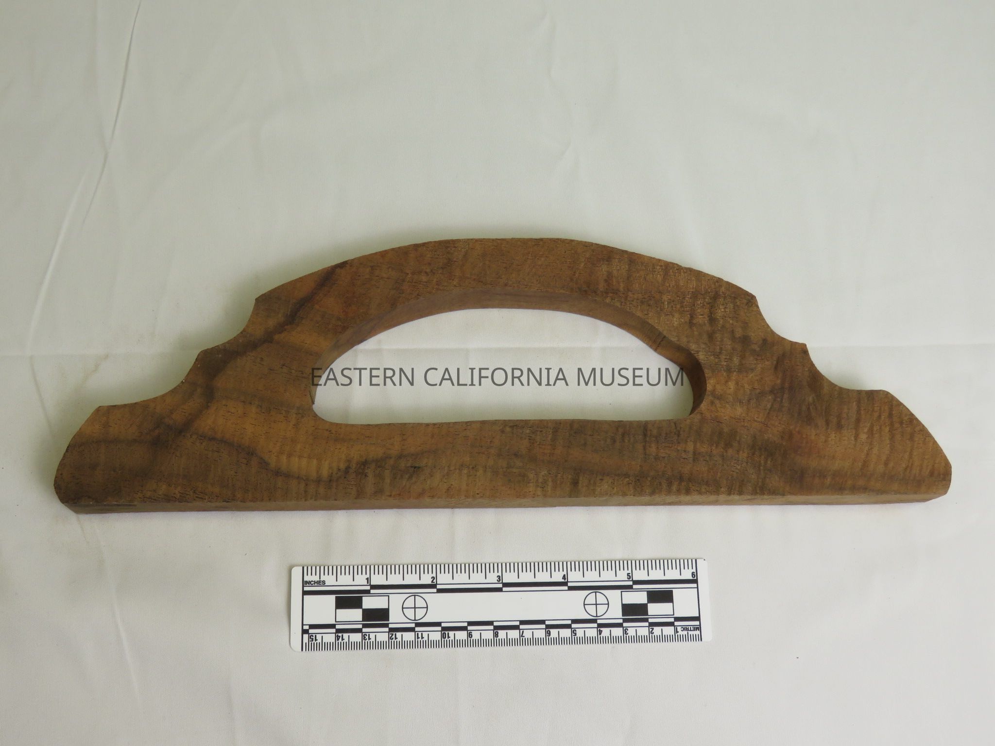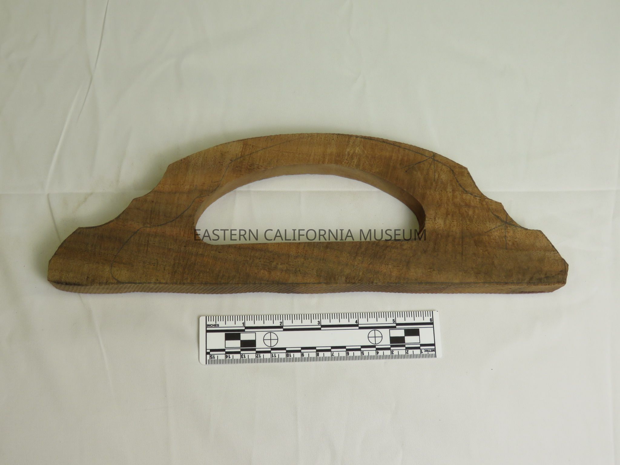 Four unfinished wood purse handles made by Shukue Kono. They were likely made at Manzanar War Relocation Center.