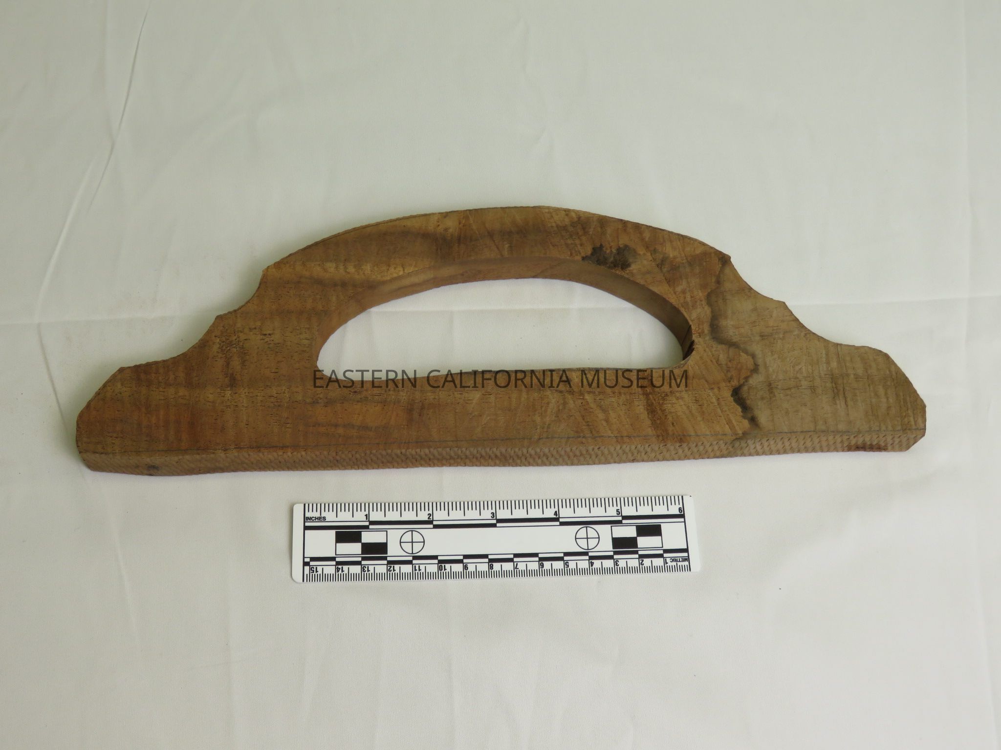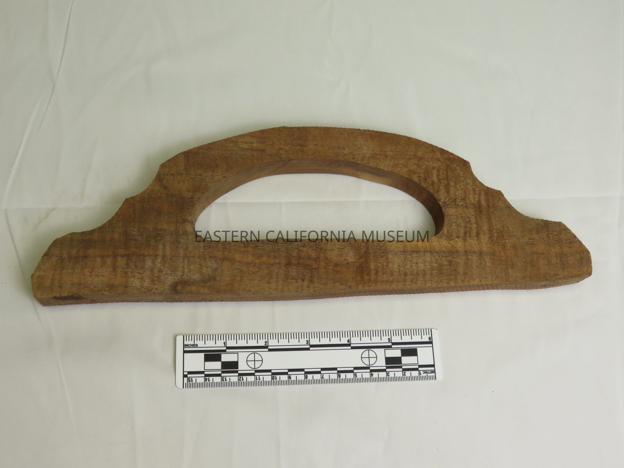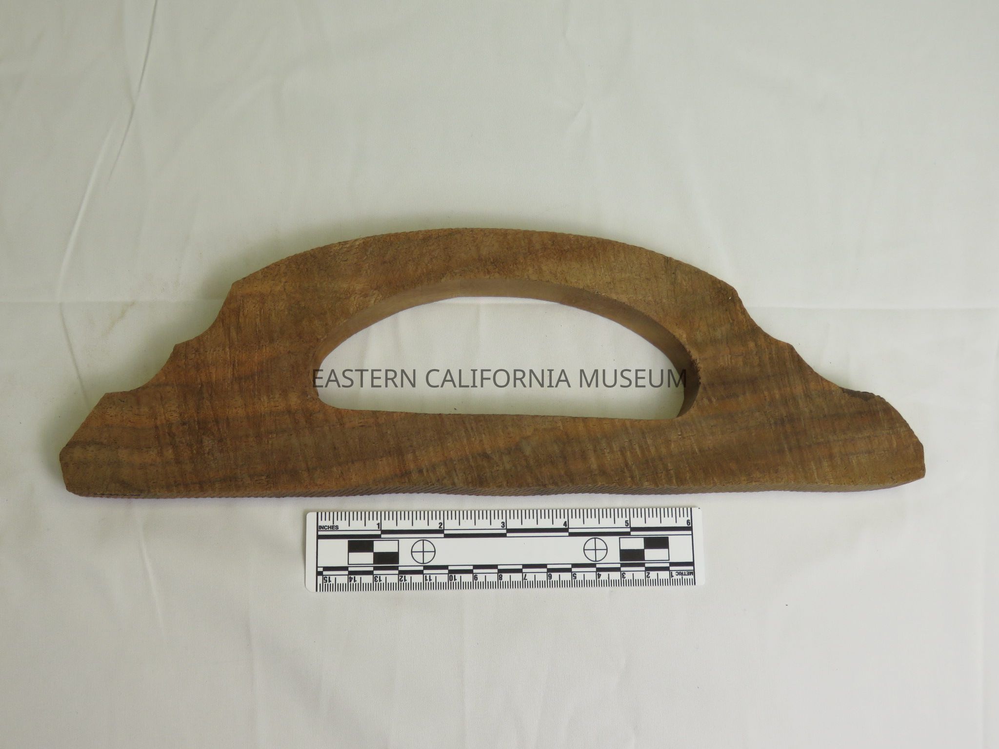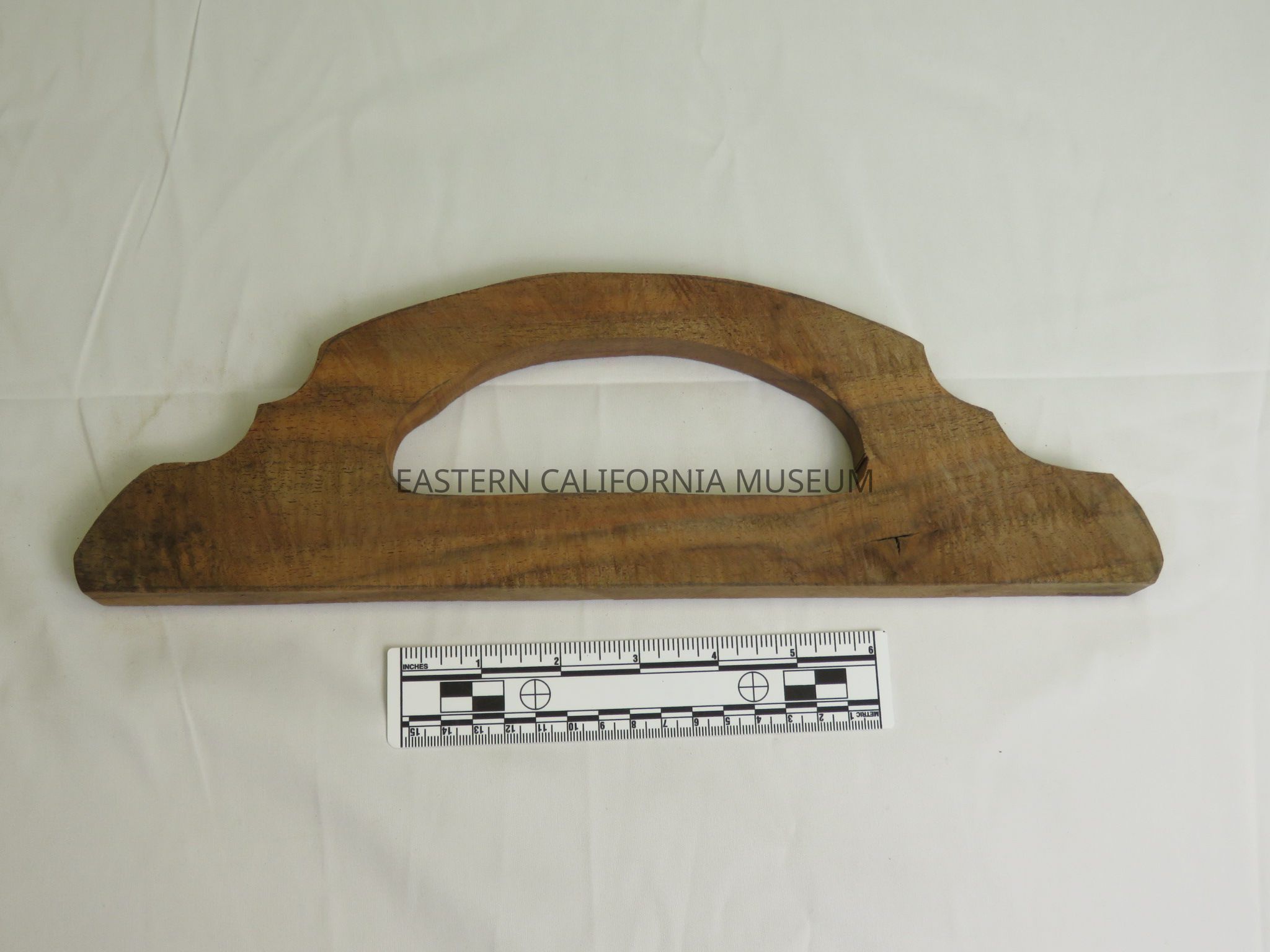 Four unfinished wood purse handles made by Shukue Kono. They were likely made at Manzanar War Relocation Center.