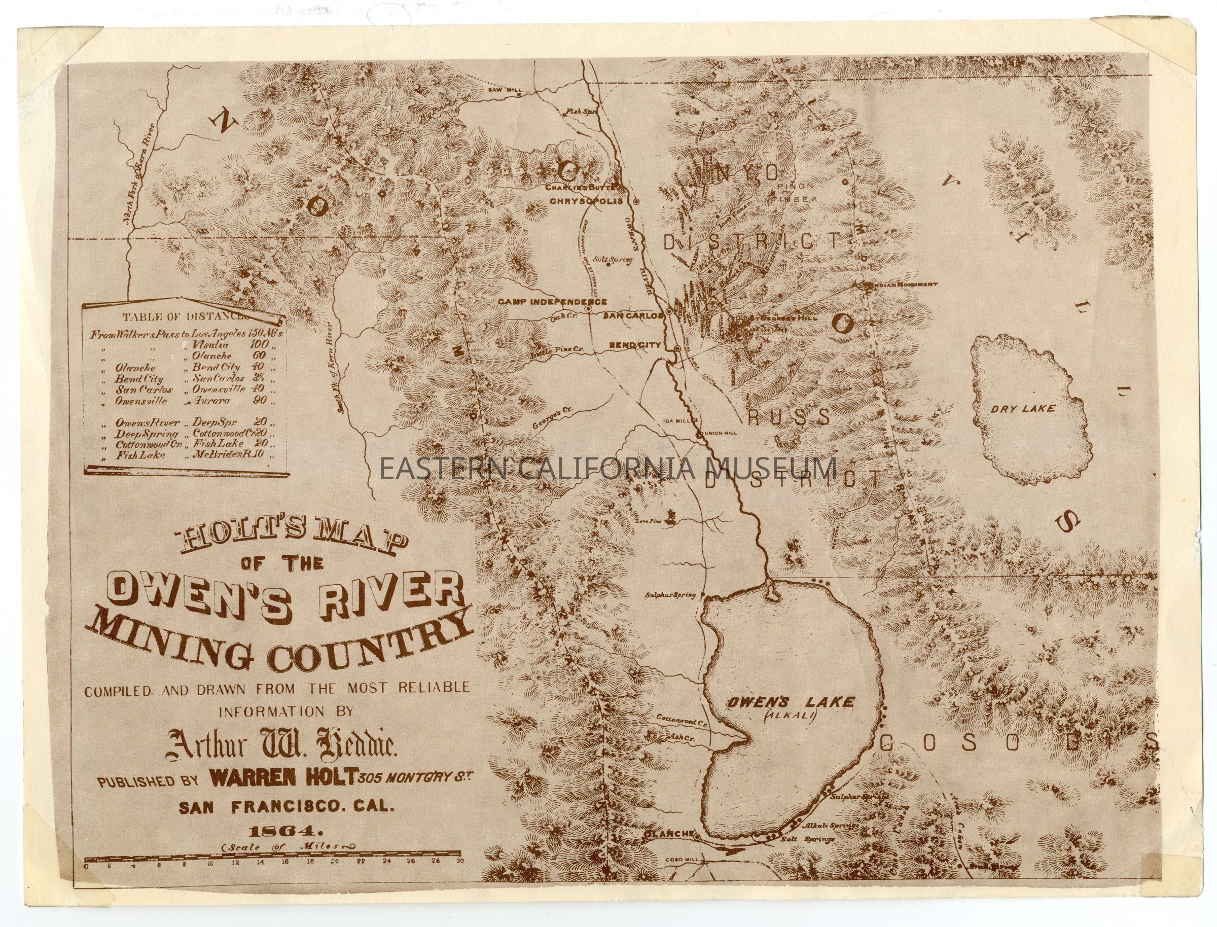 Copy (not original) of Holt's map of the Owen's [Owens] River Mining Country, 1864. Compiled and drawn from the most reliable information by Arthur W. Reddie, published by Warren Holt of San Francisco.Map Details