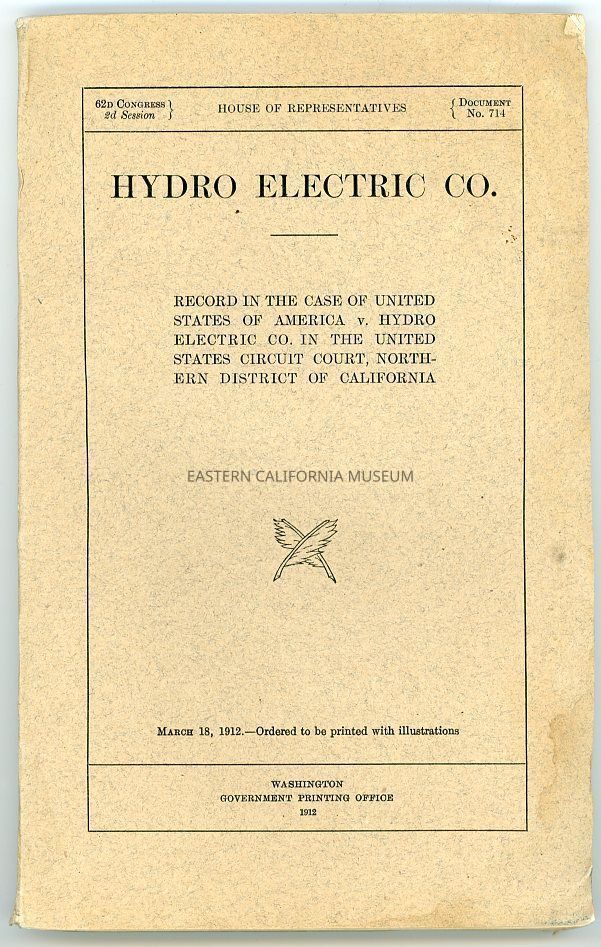 Hydro Electric Co.: Record in the Case of United States of America v. Hydro Electric Co. in the United States Circuit Court, Northern District of CaliforniaEntry/Object ID