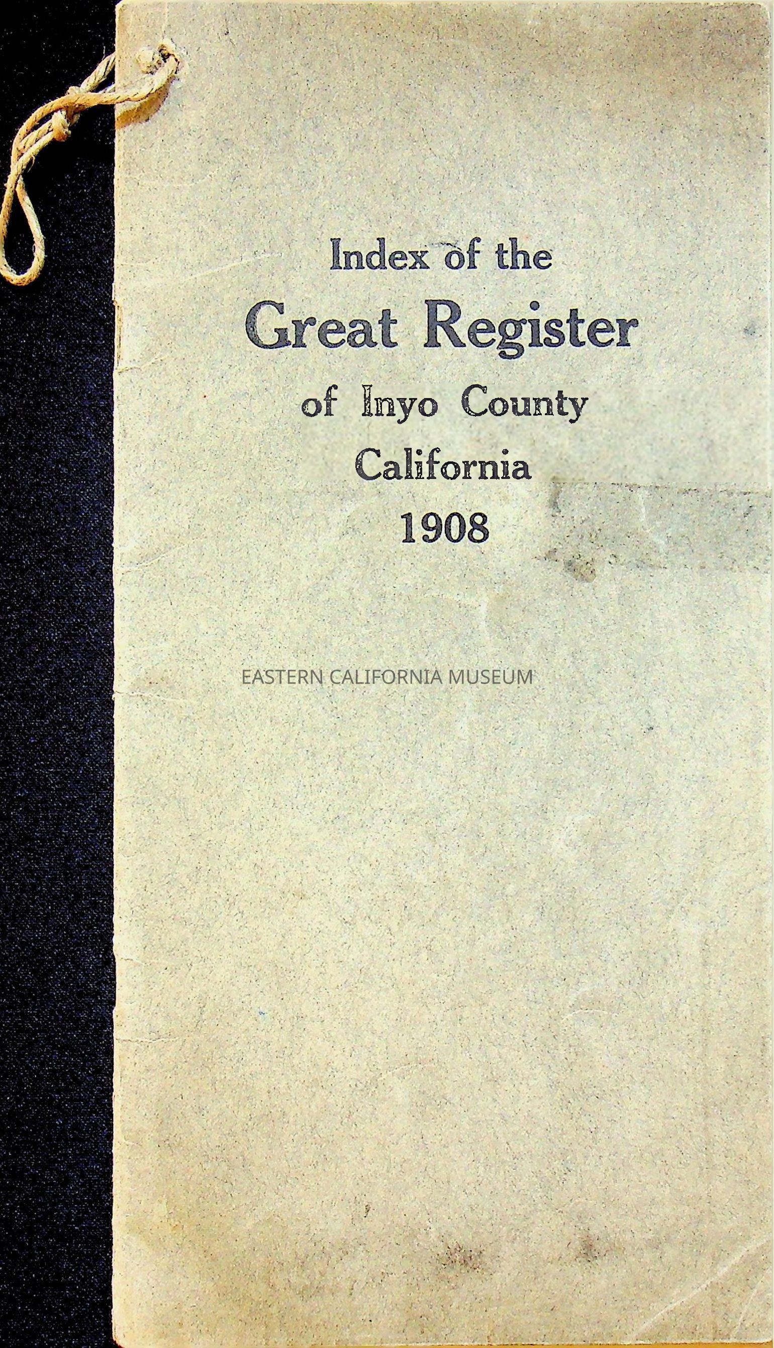 Index of the Great Register of Inyo County, California, 1908Entry/Object ID