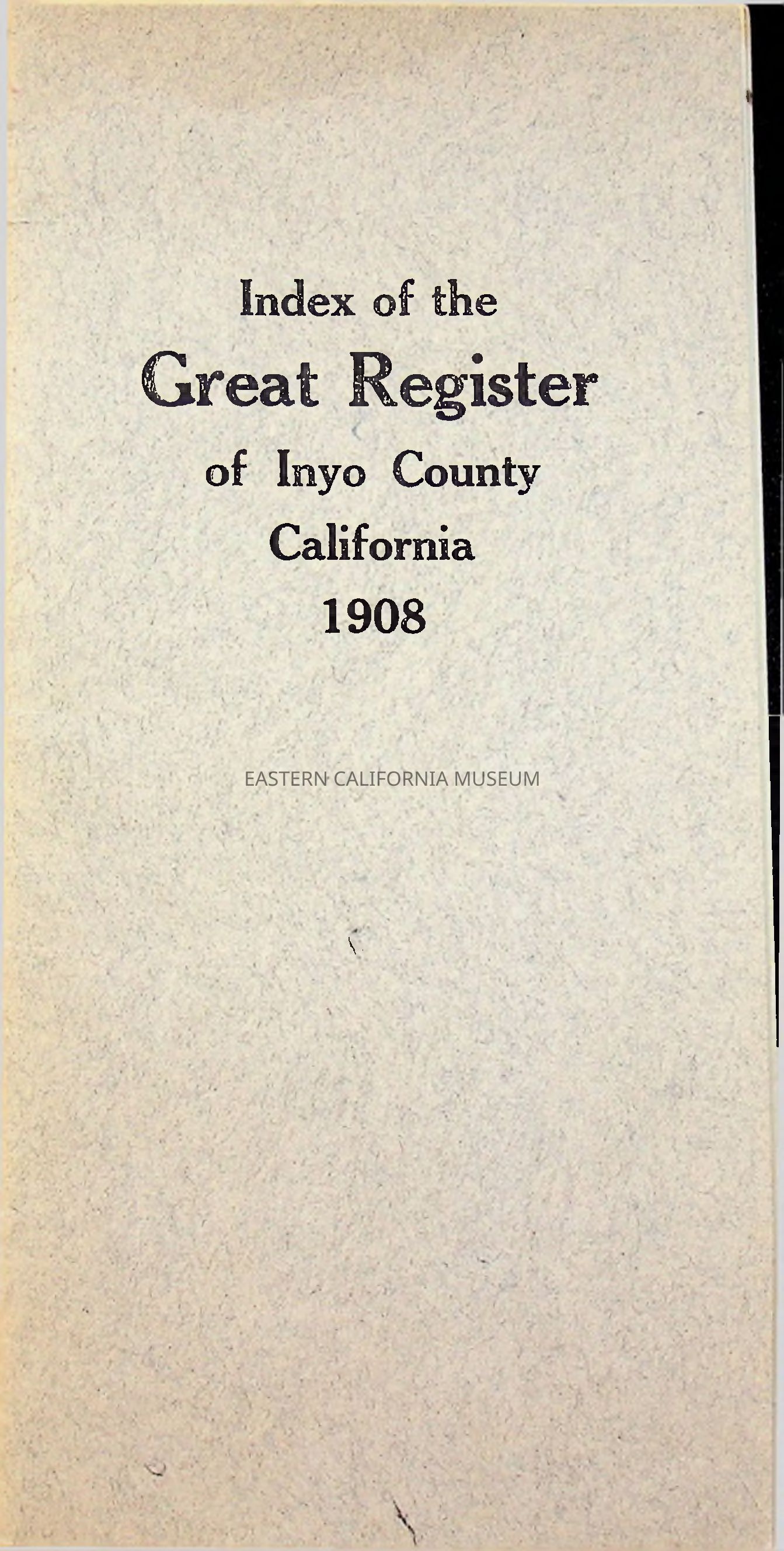 Index of the Great Register of Inyo County, California, 1908.Collection