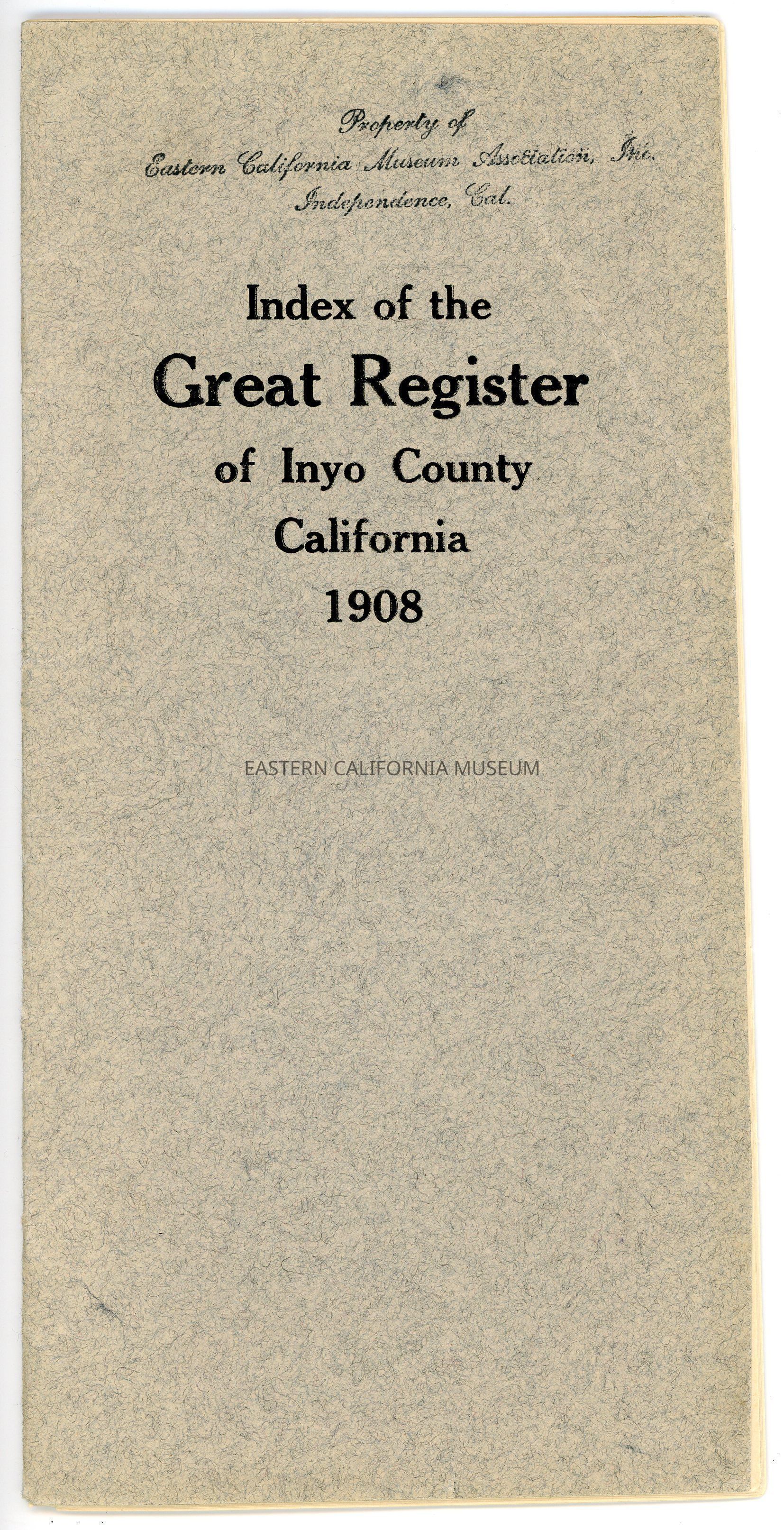 Index of the Great Register of Inyo County, California, 1908.Collection