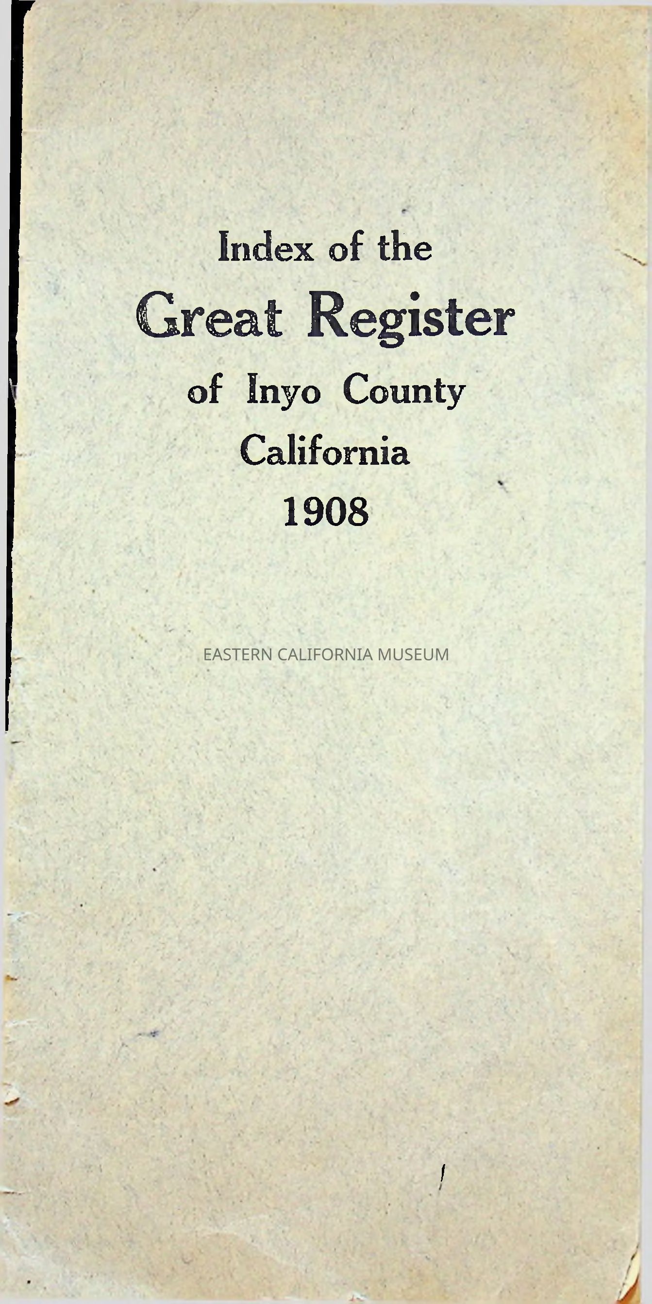 Index of the Great Register of Inyo County, California, 1908.Collection