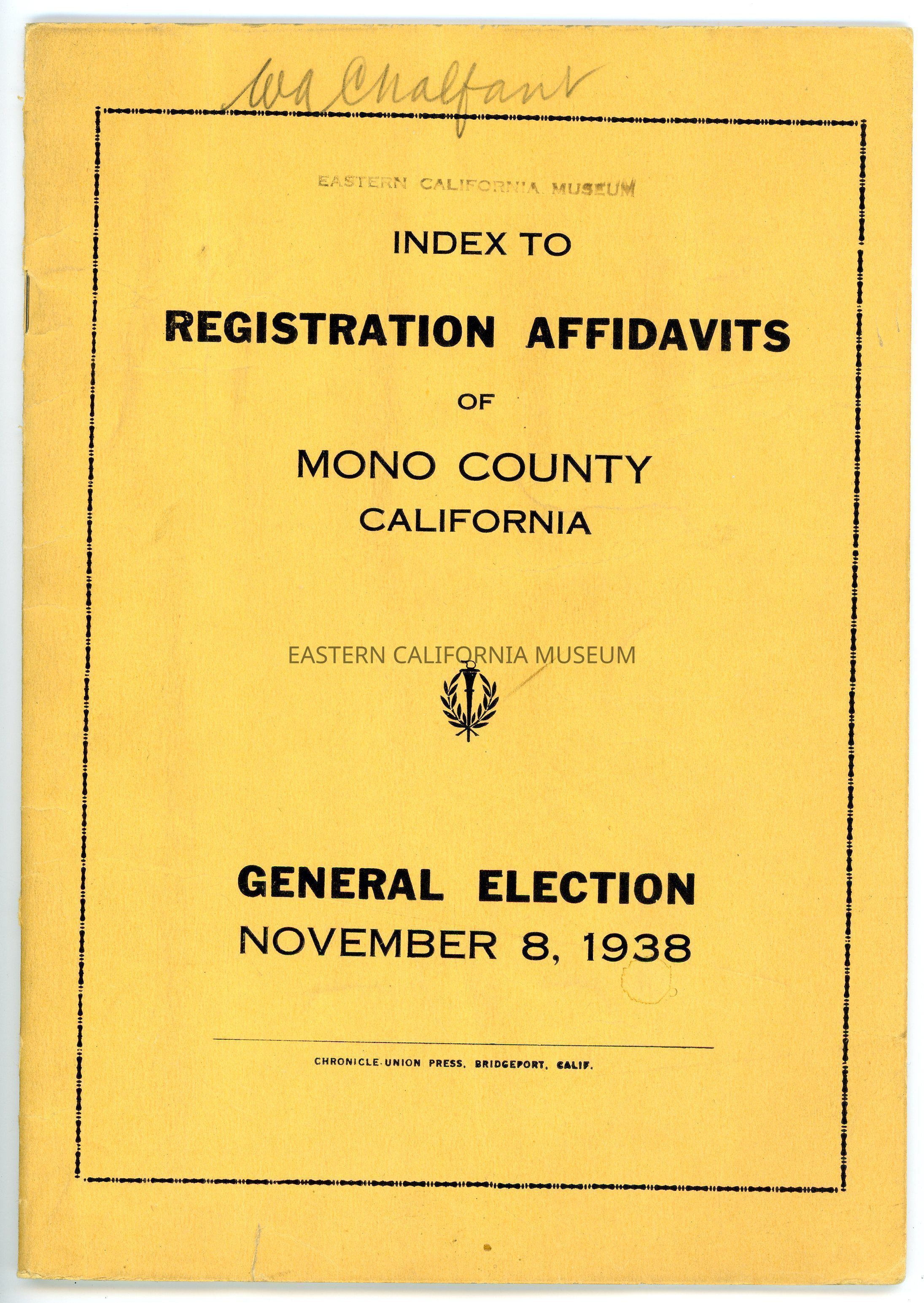 Index to Registration Affidavits of Mono County, California, General Election, November 8, 1938Entry/Object ID