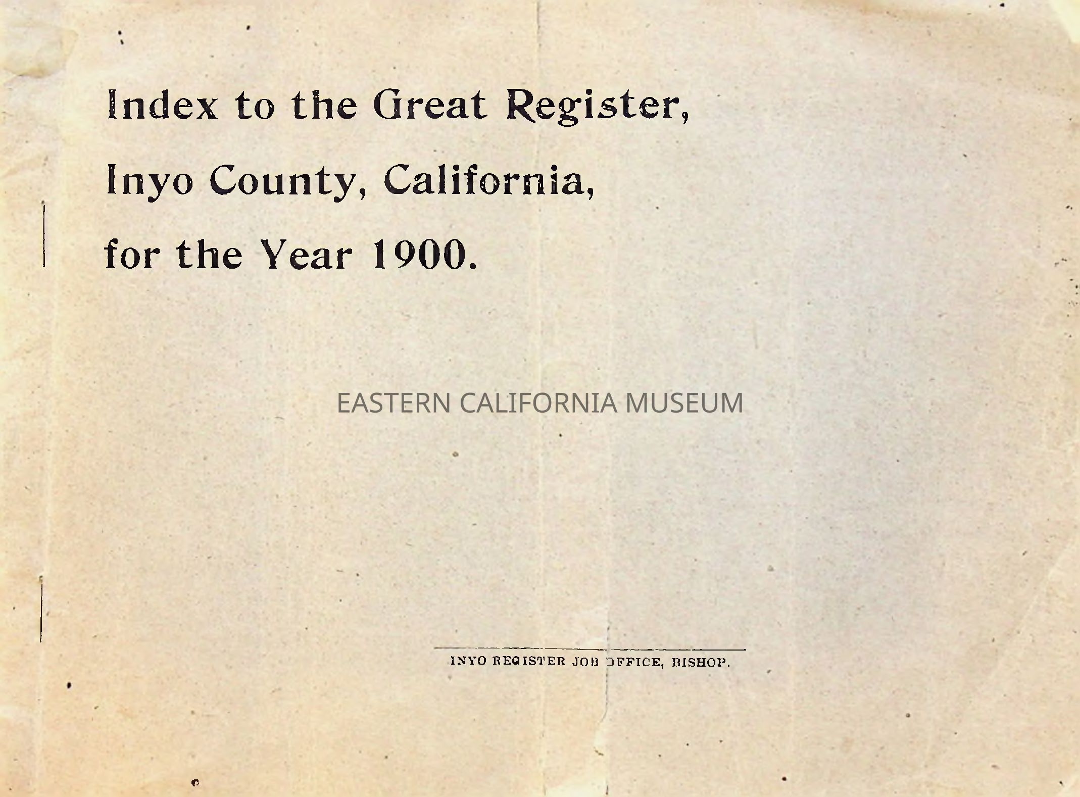 Index to the Great Register, Inyo County, California, 1900.Collection