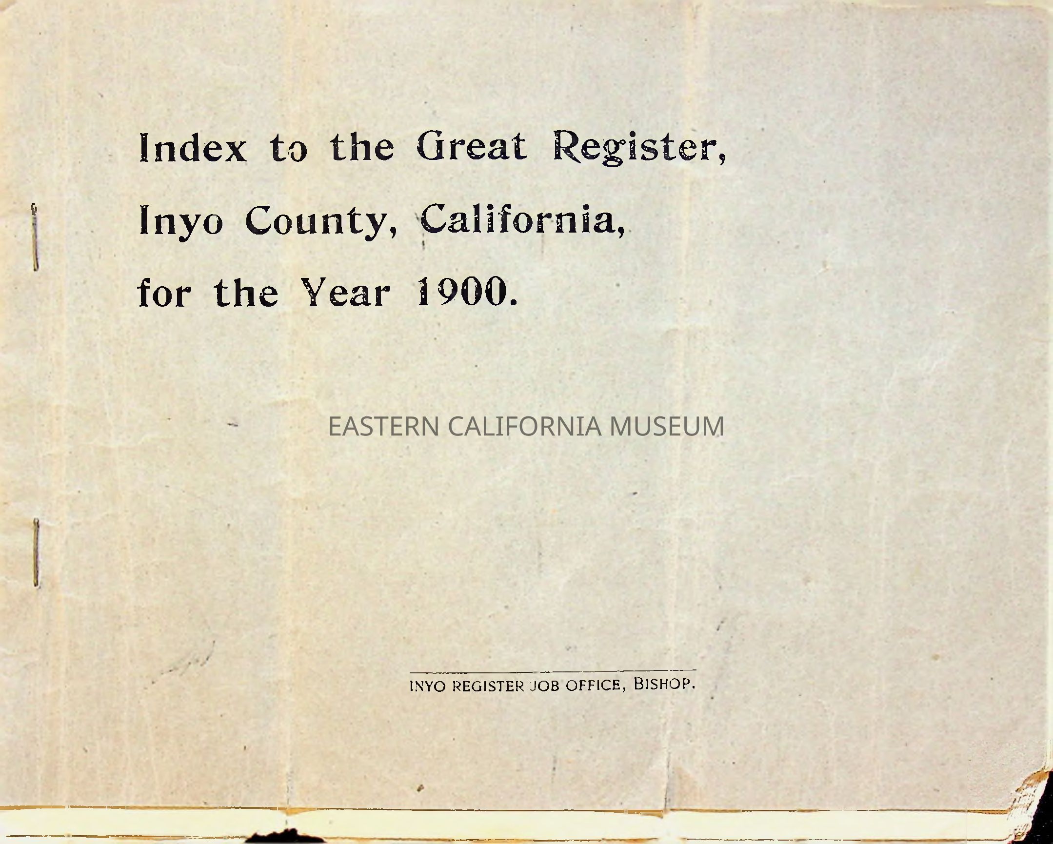 Index to the Great Register, Inyo County, California, for the Year 1900Entry/Object ID