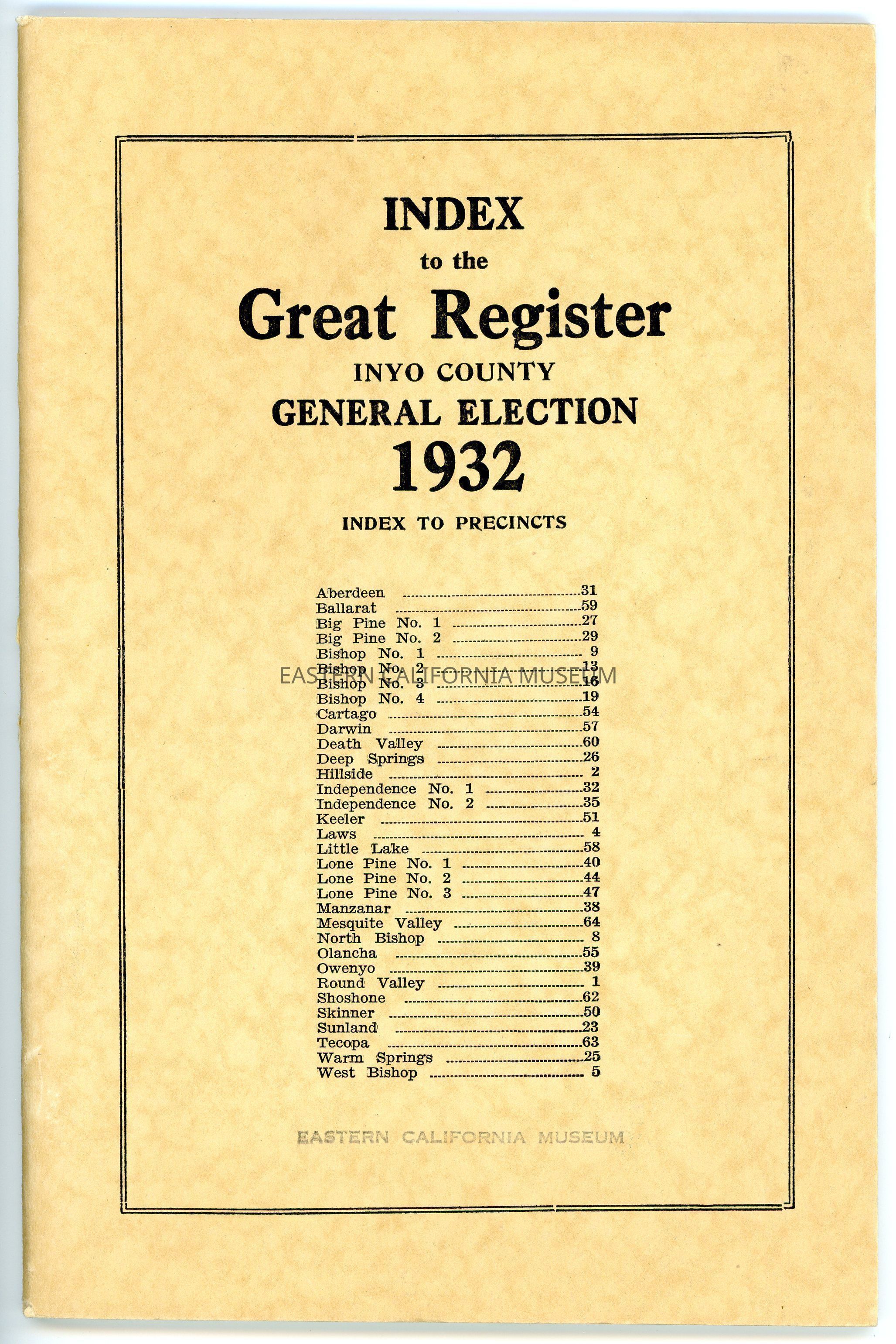Index to the Great Register, Inyo County, General Election, 1932