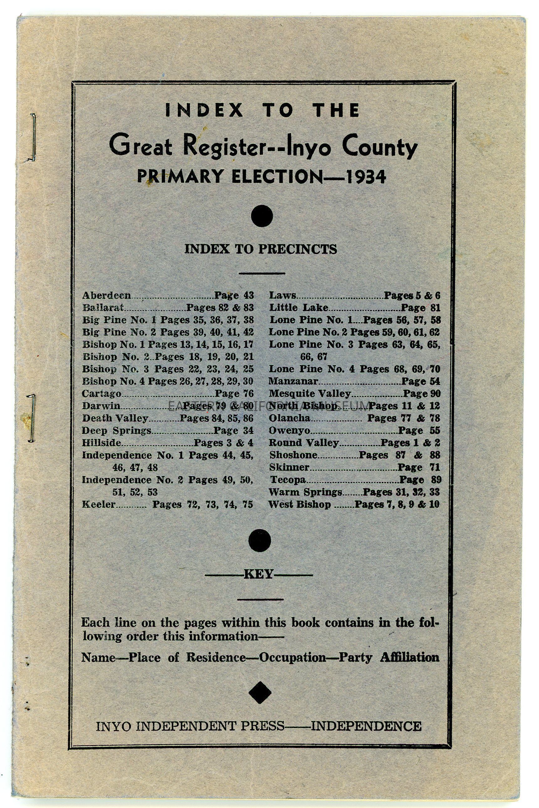 Index to the Great Register, Inyo County, Primary Election, 1934.Collection