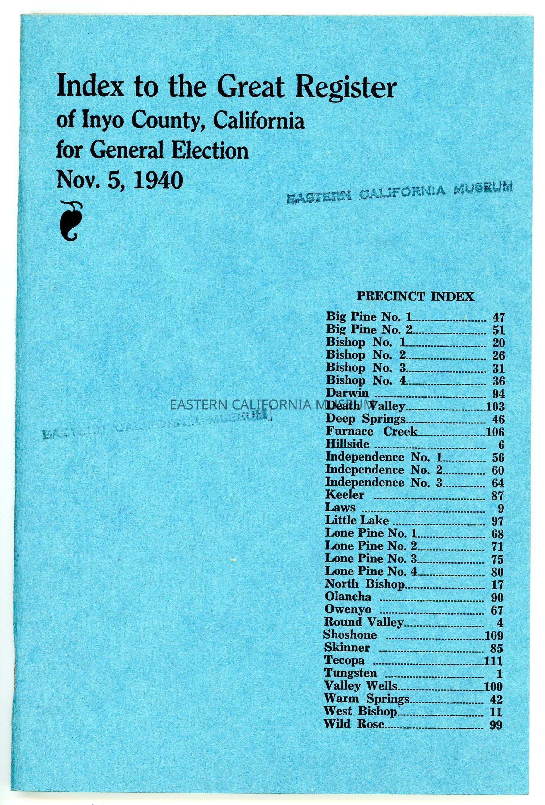 Index to the Great Register of Inyo County, California, General Election, Nov. 5, 1940.Publication Details