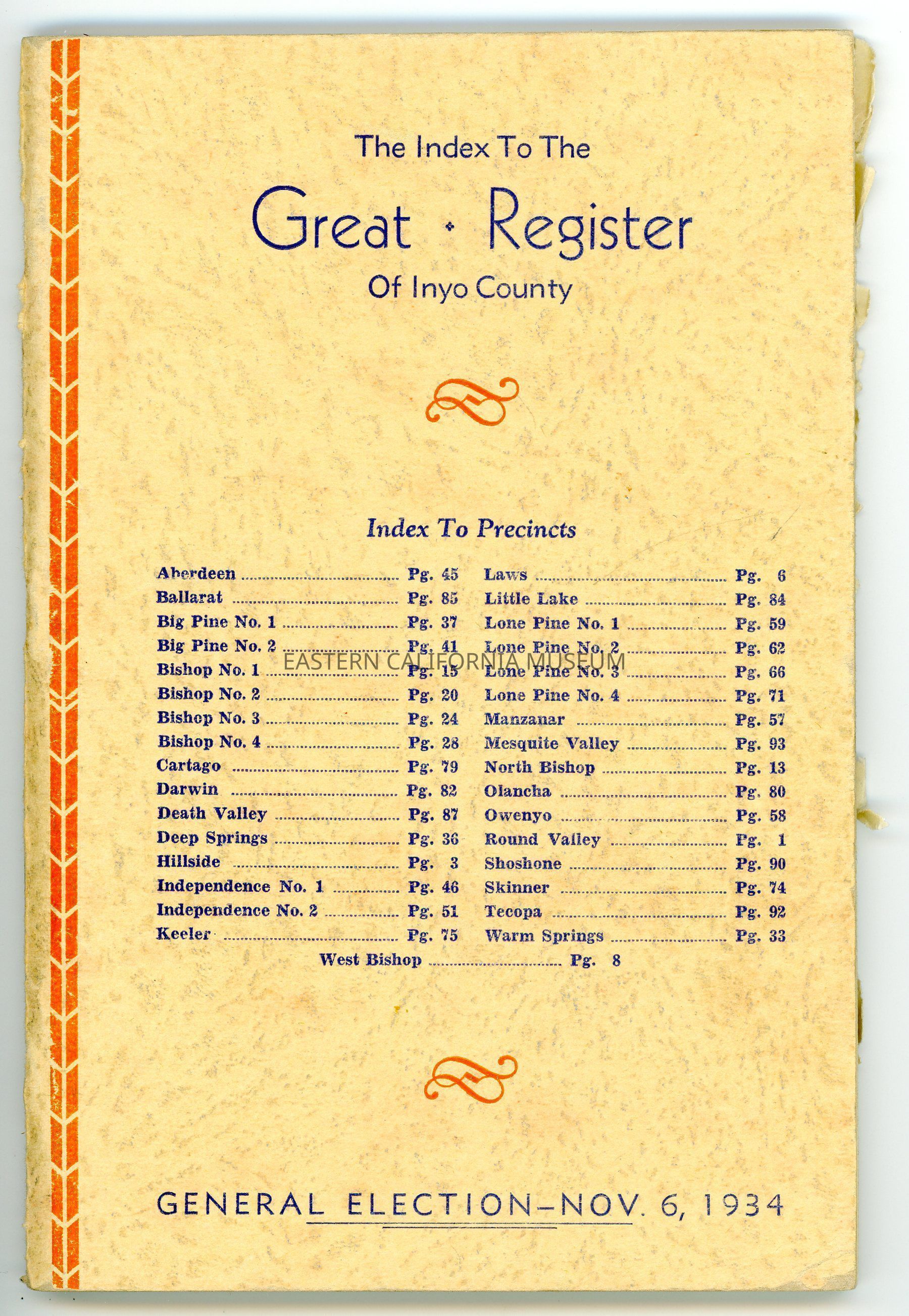 Index to the Great Register of Inyo County, General Election, Nov. 6, 1934.Collection