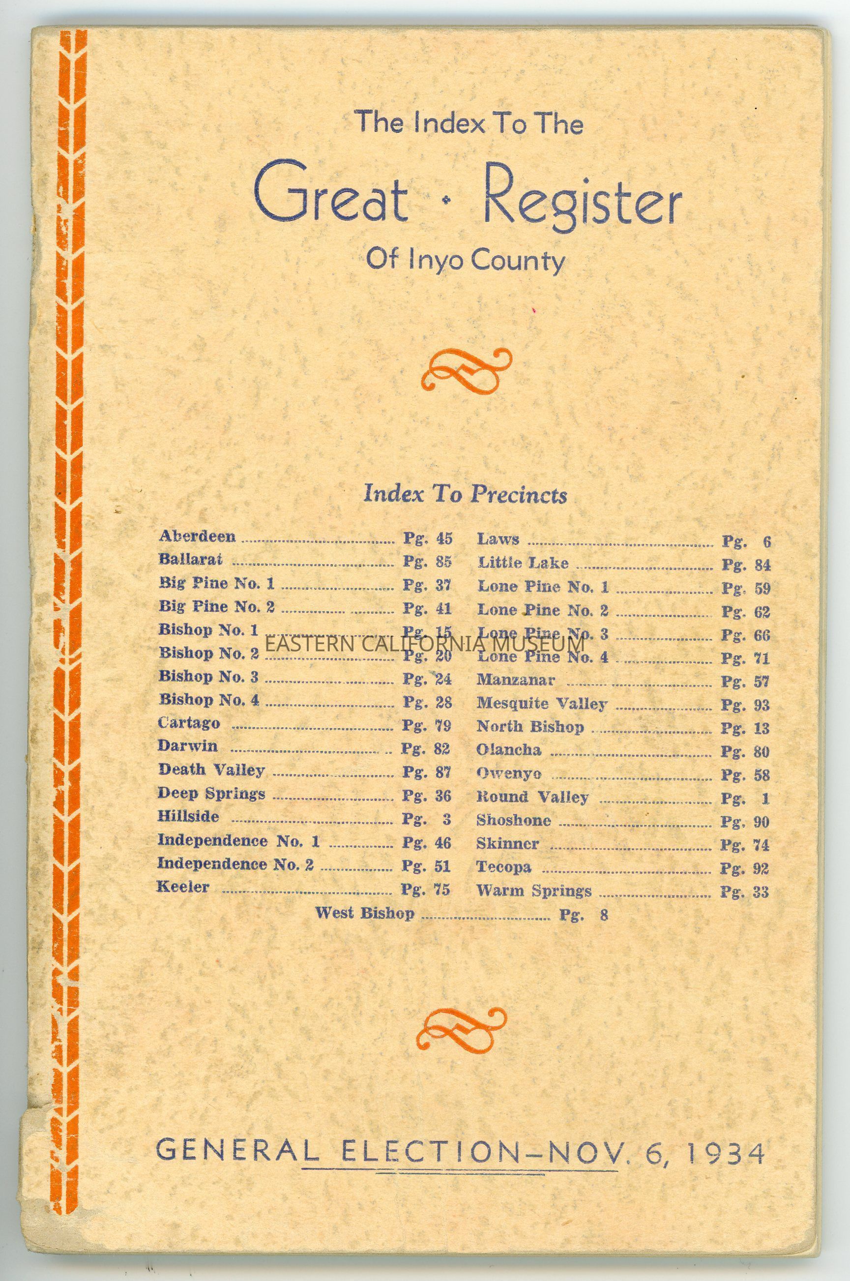 Index to the Great Register of Inyo County, General Election, November 6, 1934.Publication Details