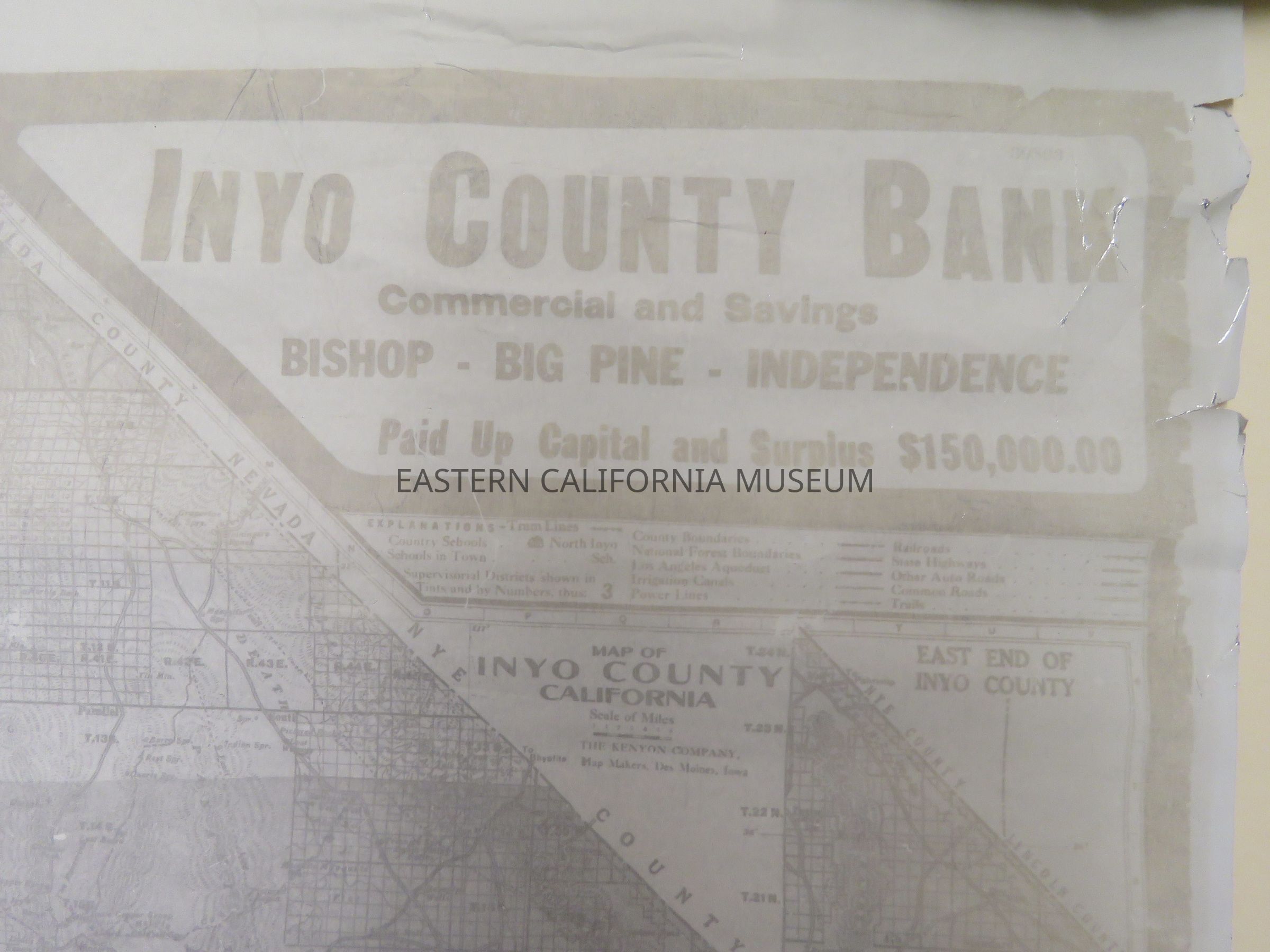 Copy of a map of Inyo County that advertises the Inyo County Bank in 1920. The map was made by the Kenyon Company of Des Moines, Iowa.Map Details