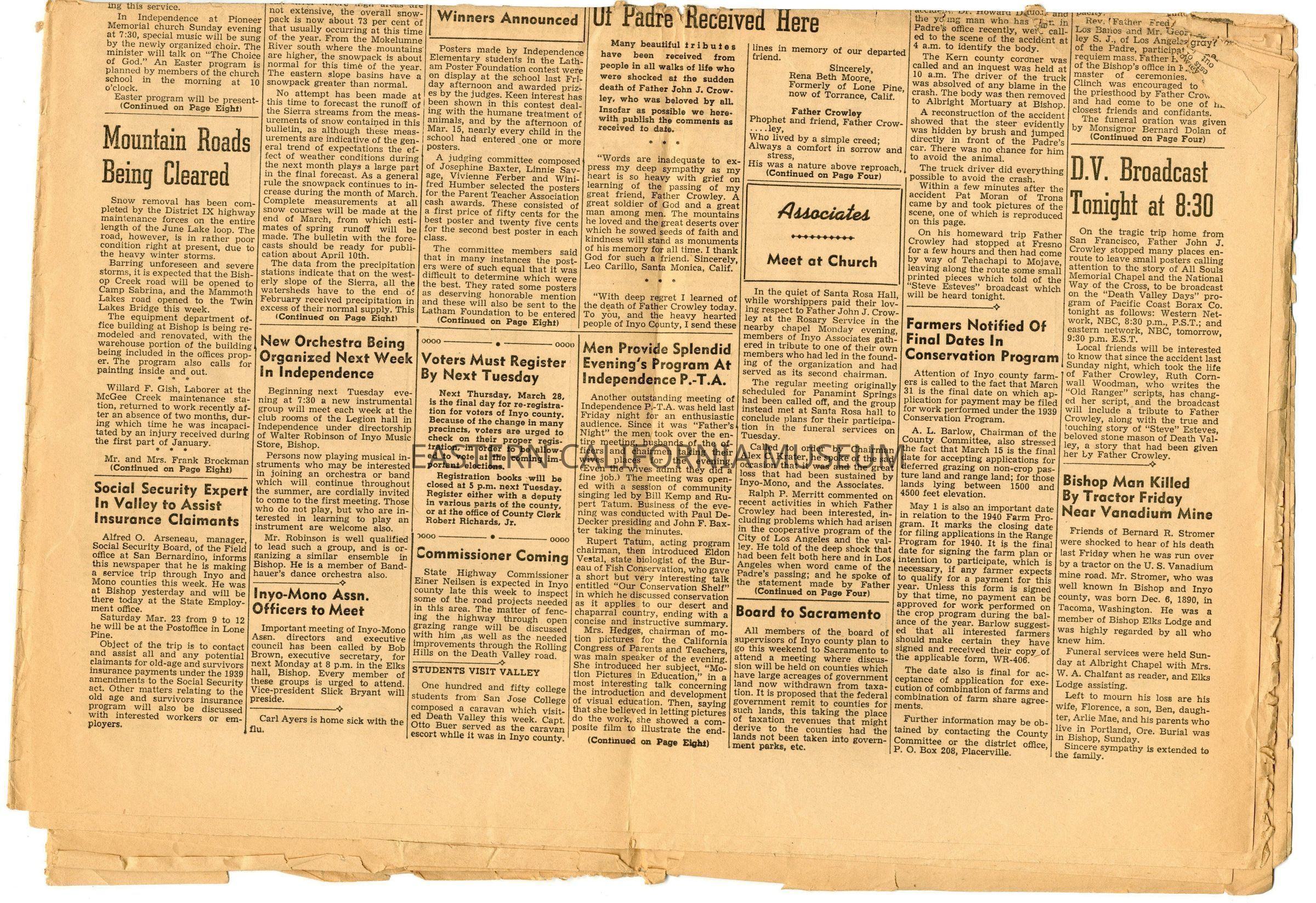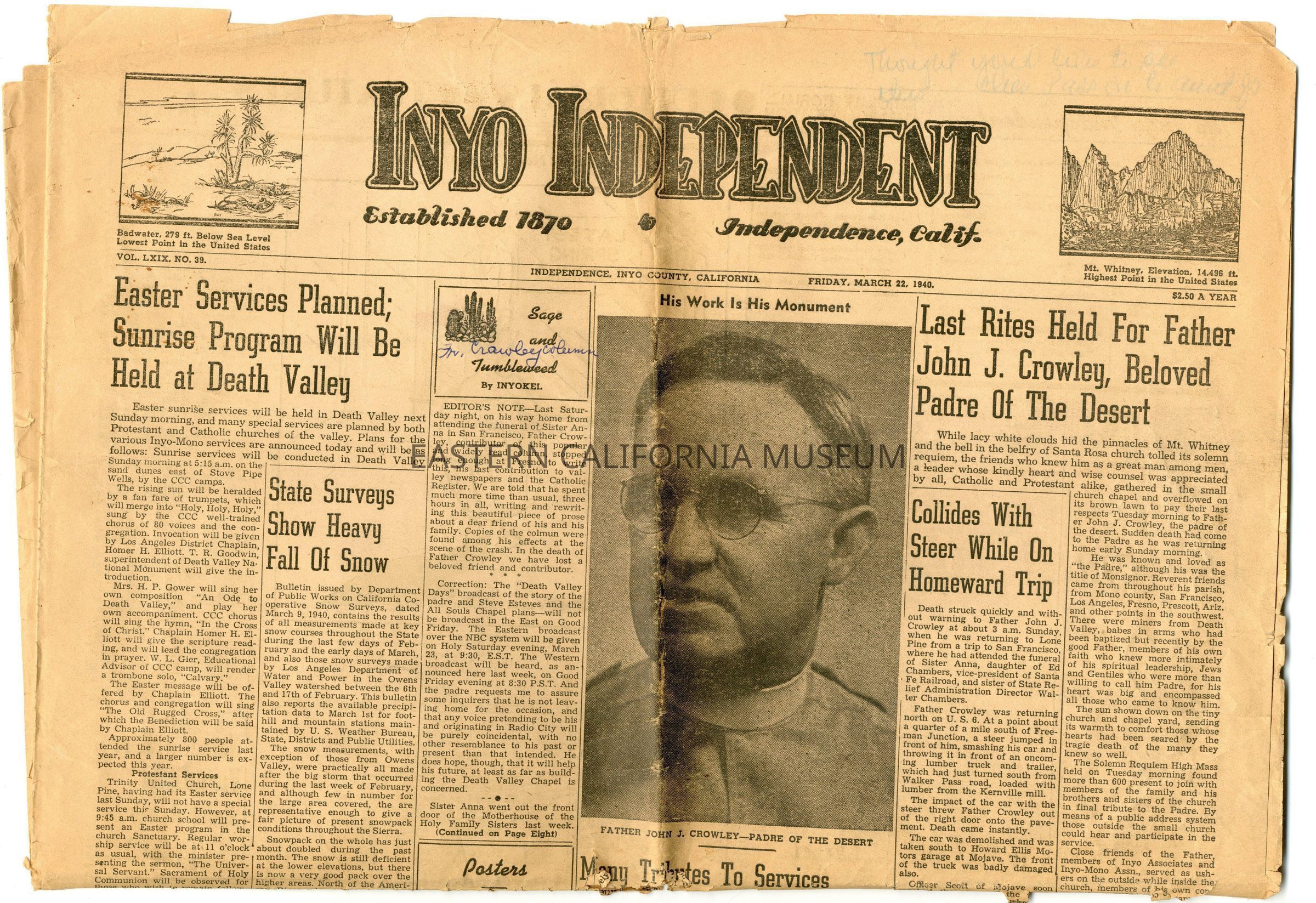 Newspaper: Inyo Independent, Vol. LXIX, No. 39, March 22, 1940.Collection