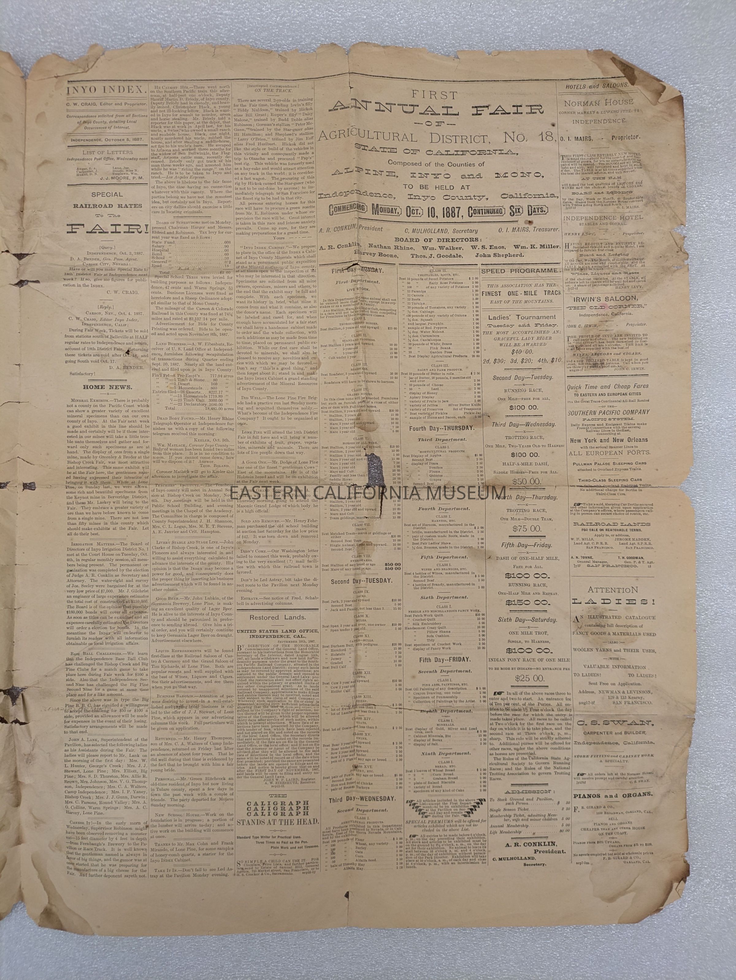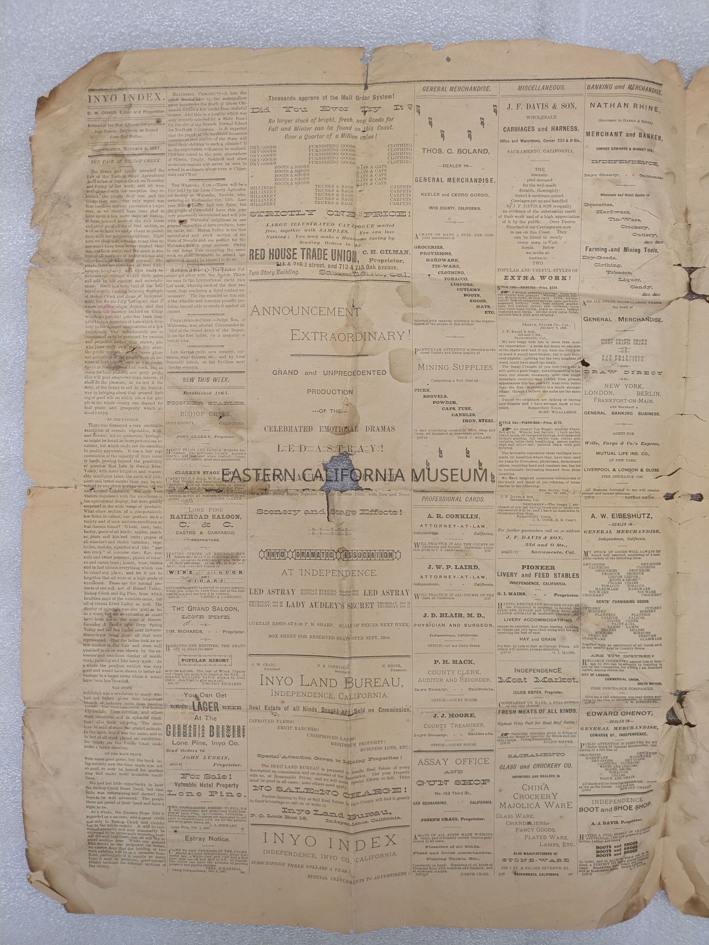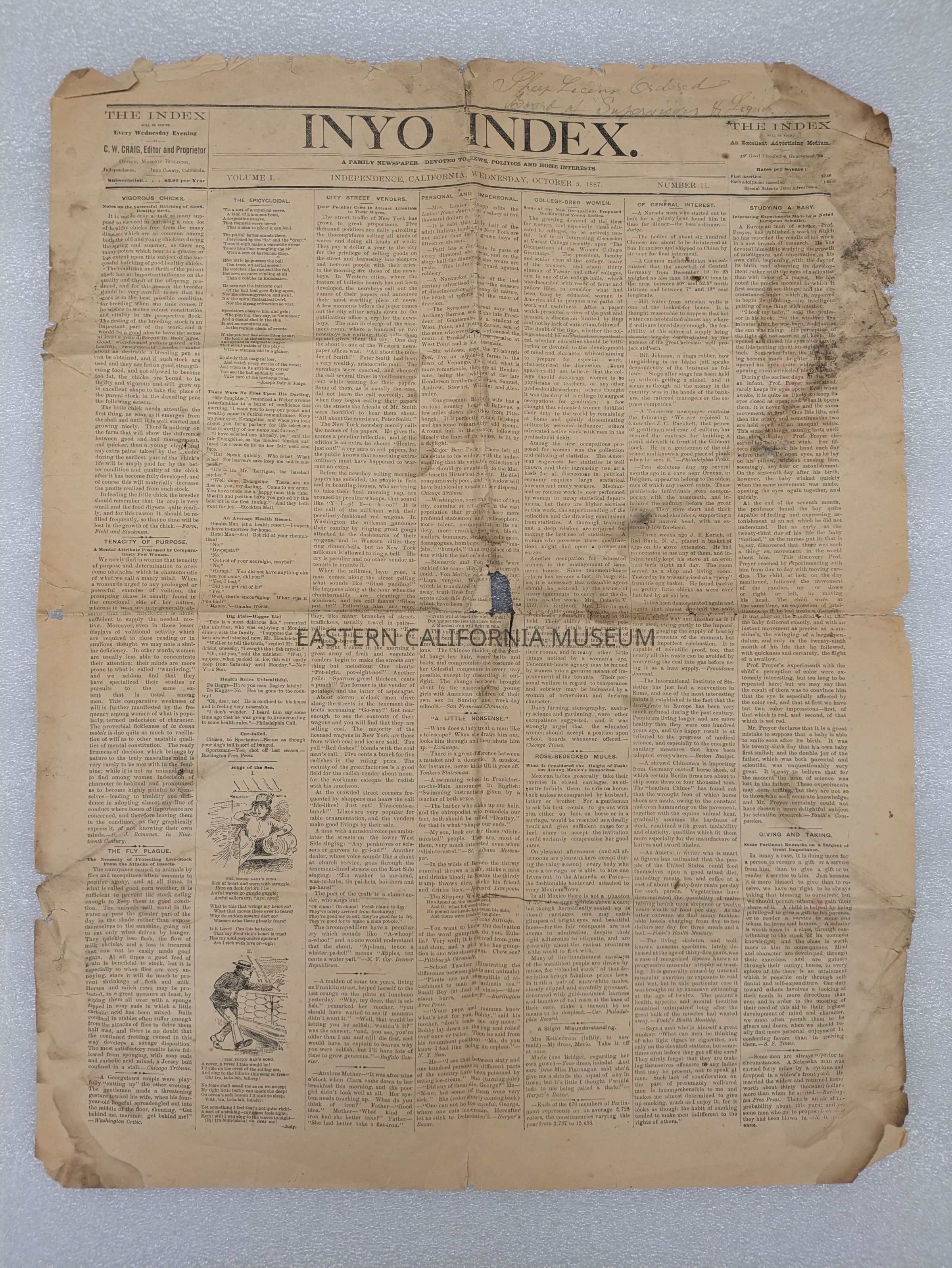 Newspaper: Inyo Index, Vol. 1, No. 11, October 5, 1887.