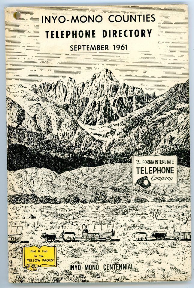 "Inyo-Mono Counties Telephone Directory, September 1961" was sent to the Eastern California Museum Association.Book Details