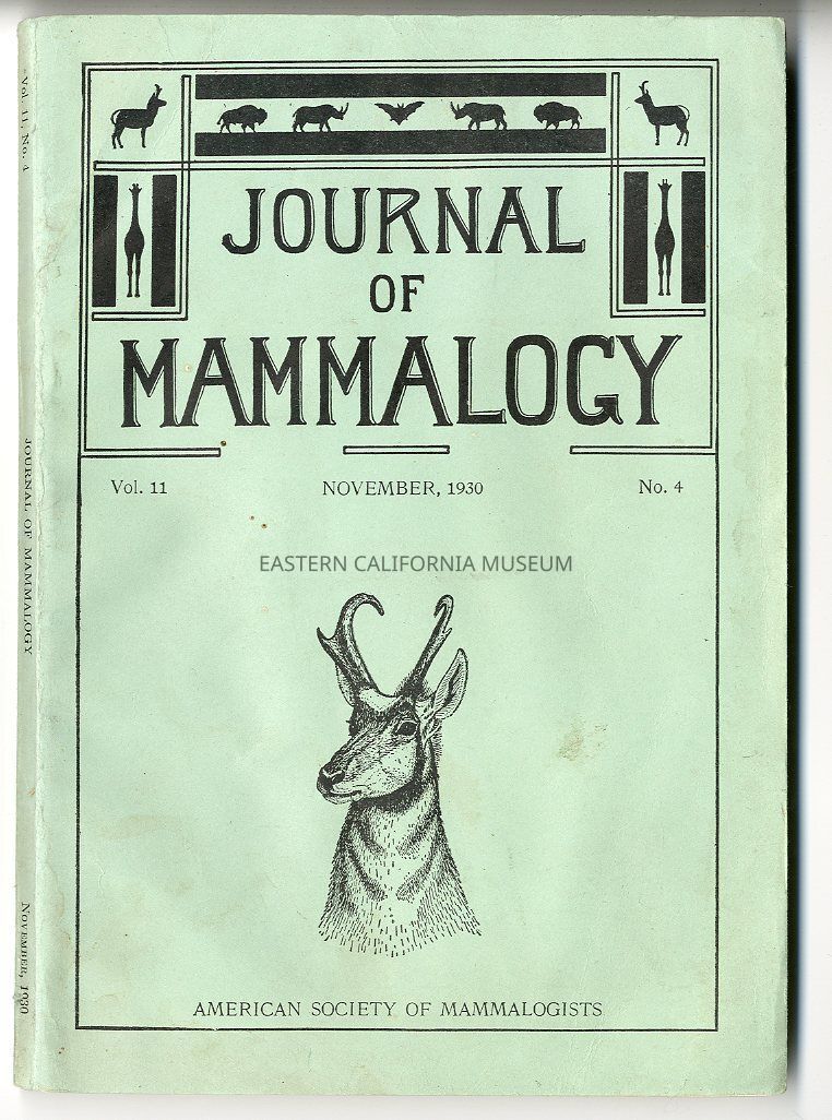 "Journal of Mammalogy, Vol. 11, No. 4, November 1930"Publication Details