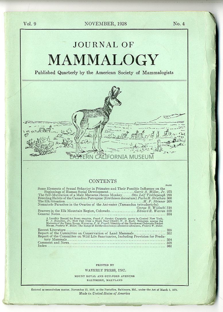 "Journal of Mammalogy, Vol. 9, No. 4, November 1928"Publication Details