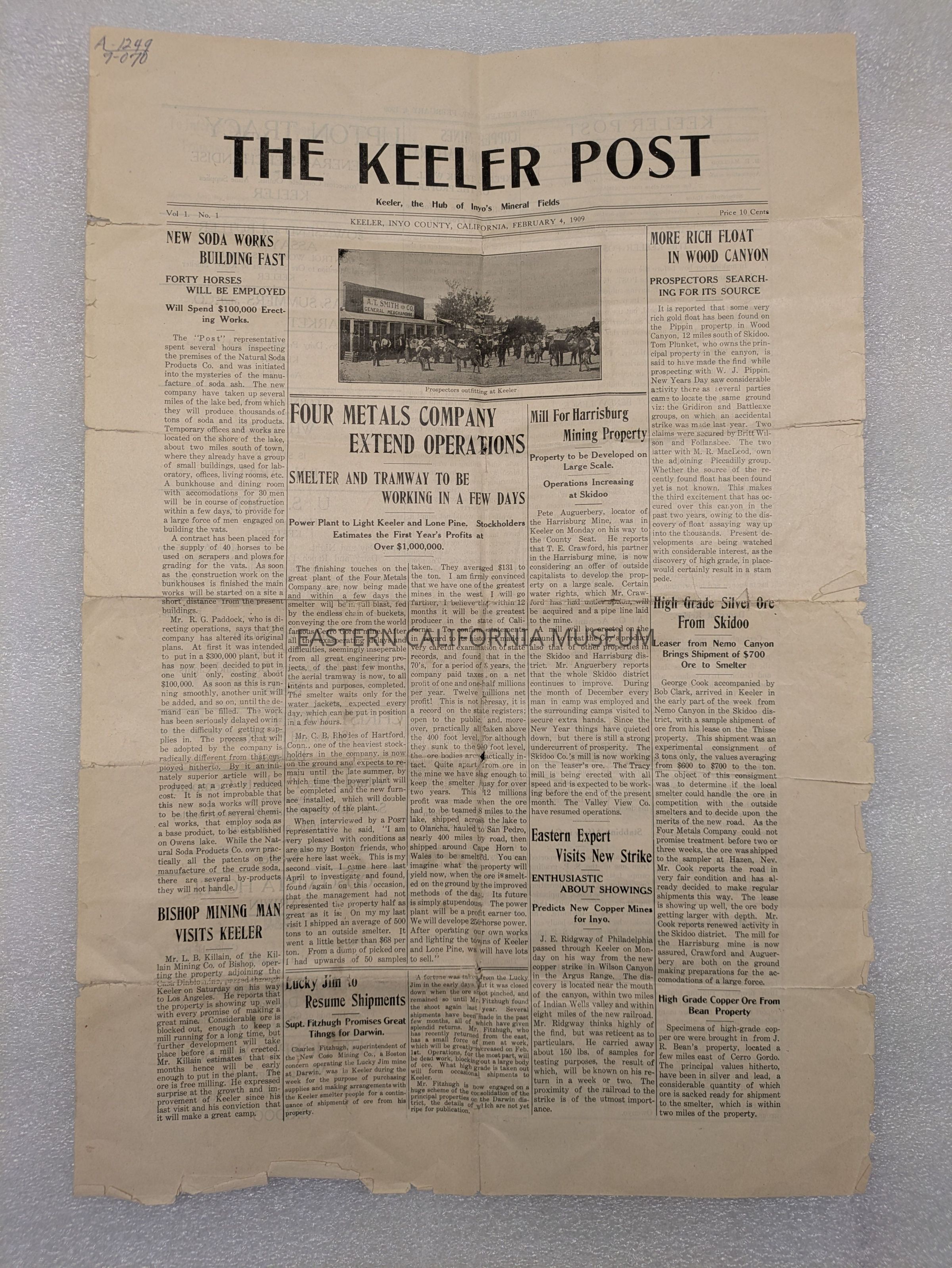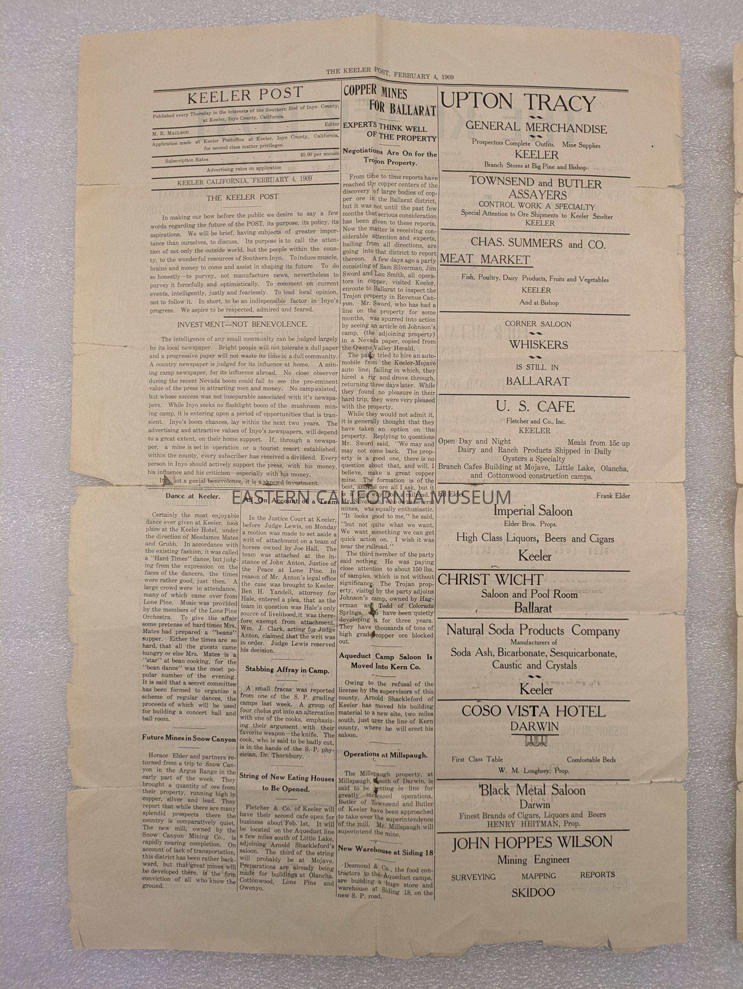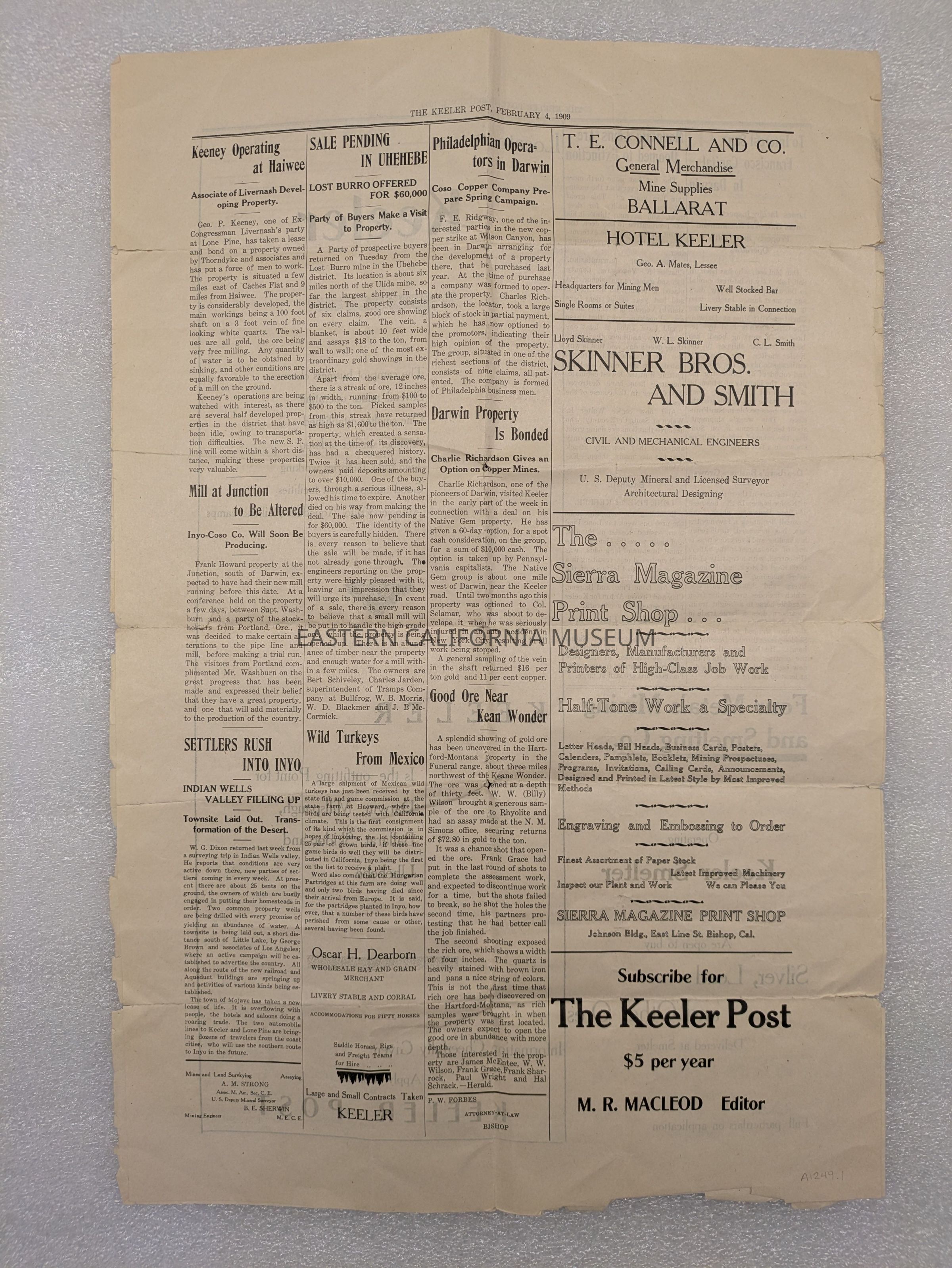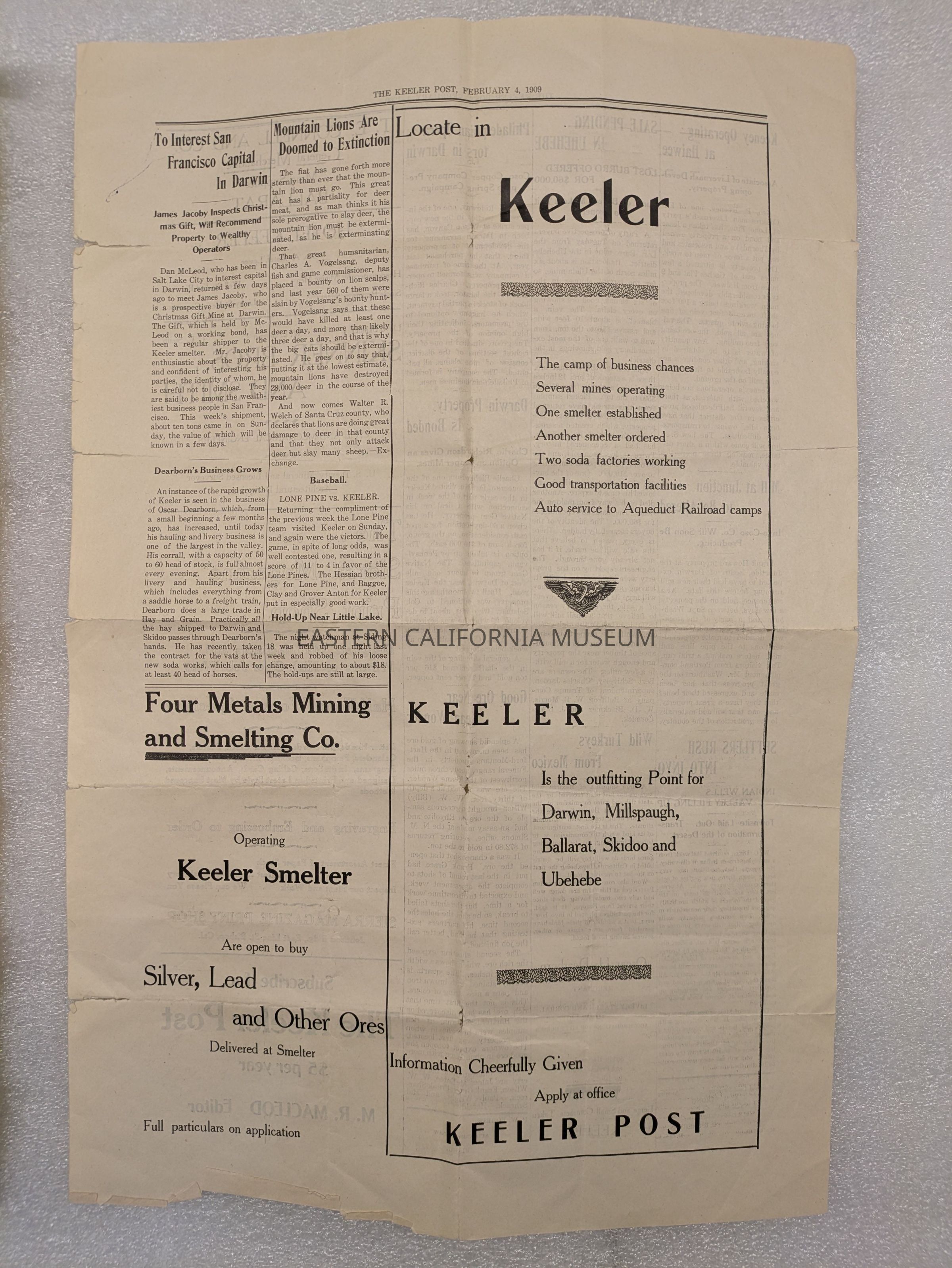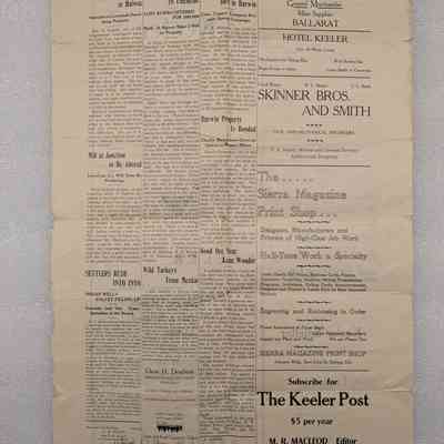 Newspaper: The Keeler Post, February 4, 1909. Contains an article about Mr. Cook.