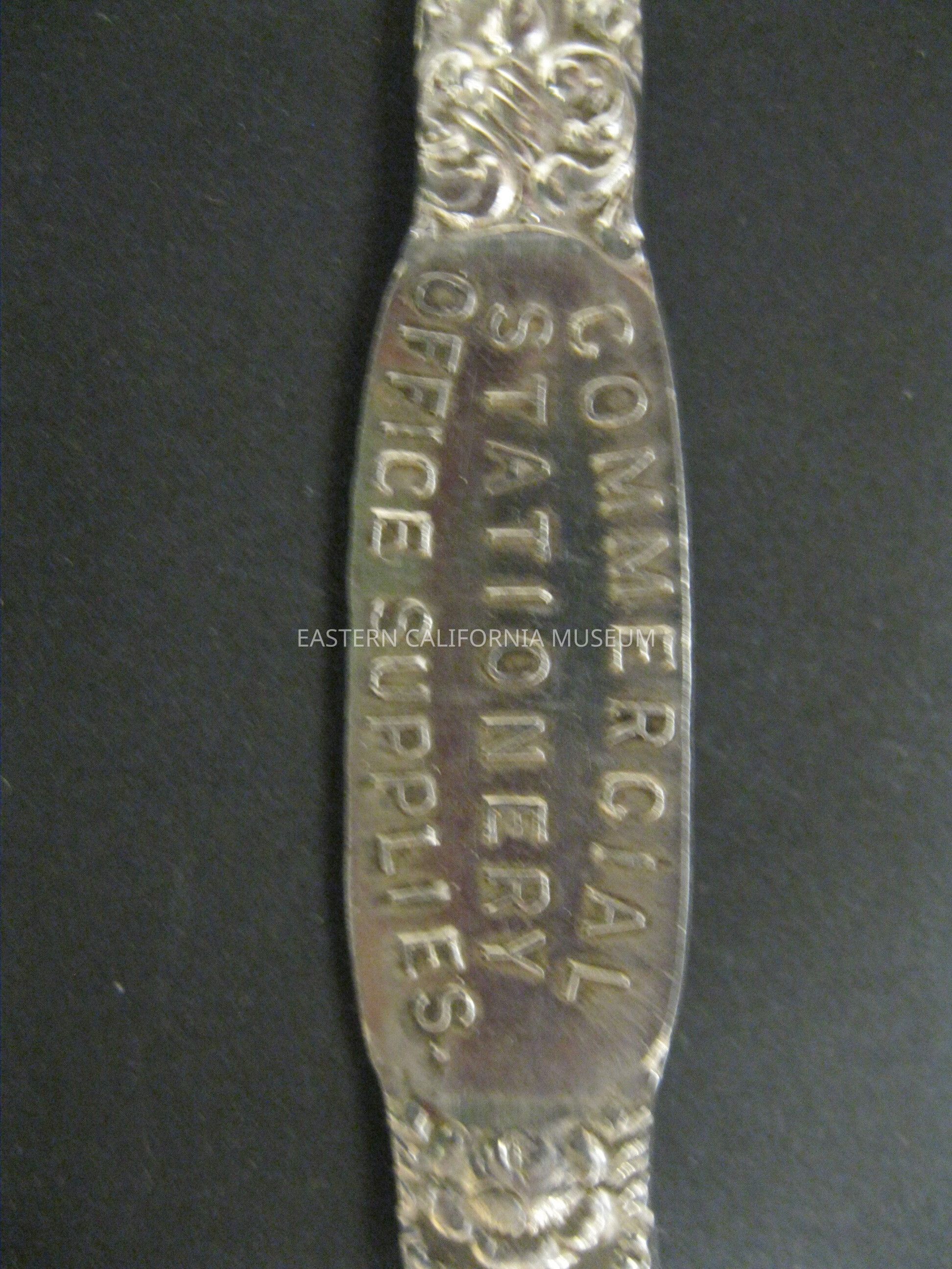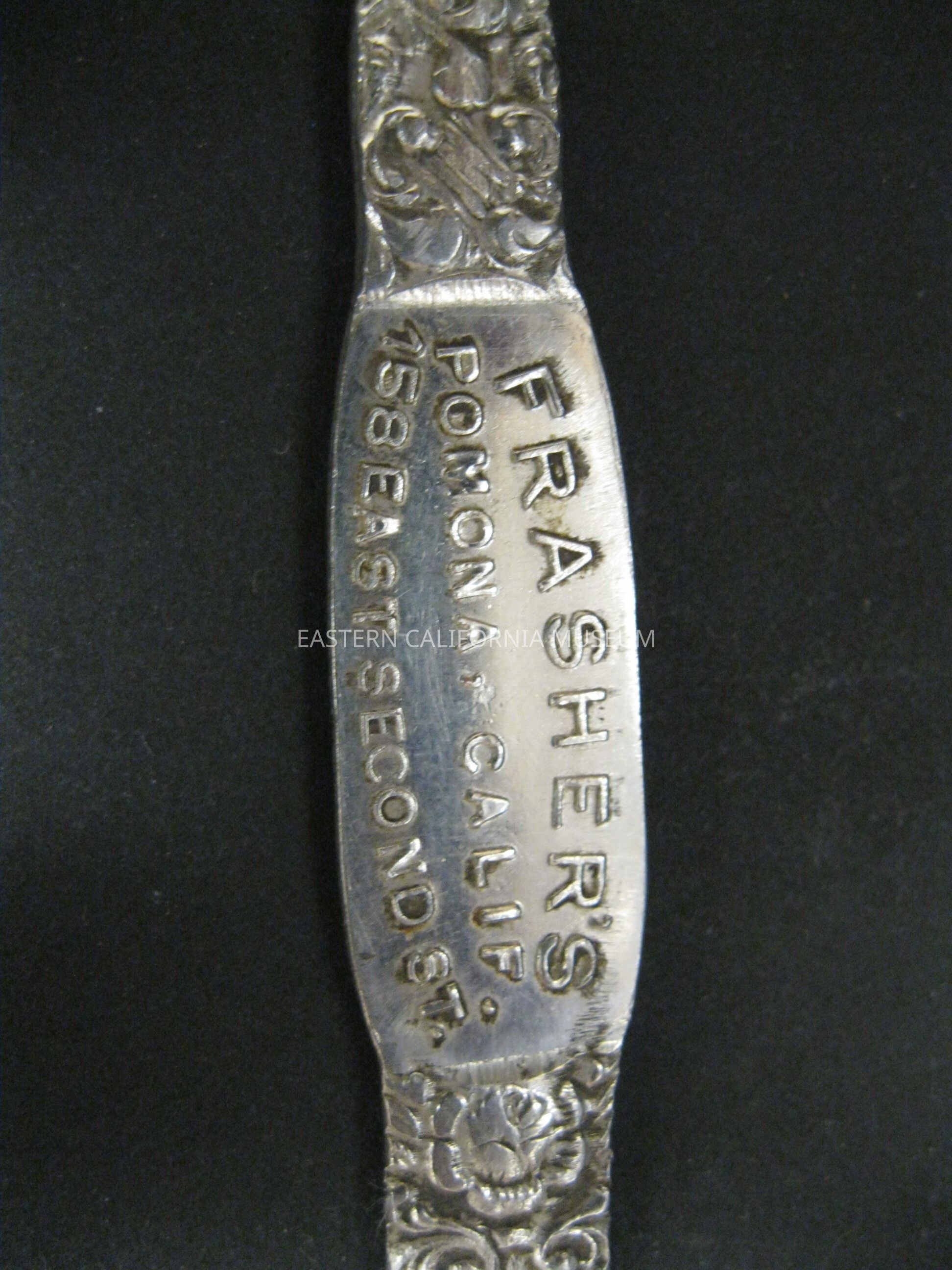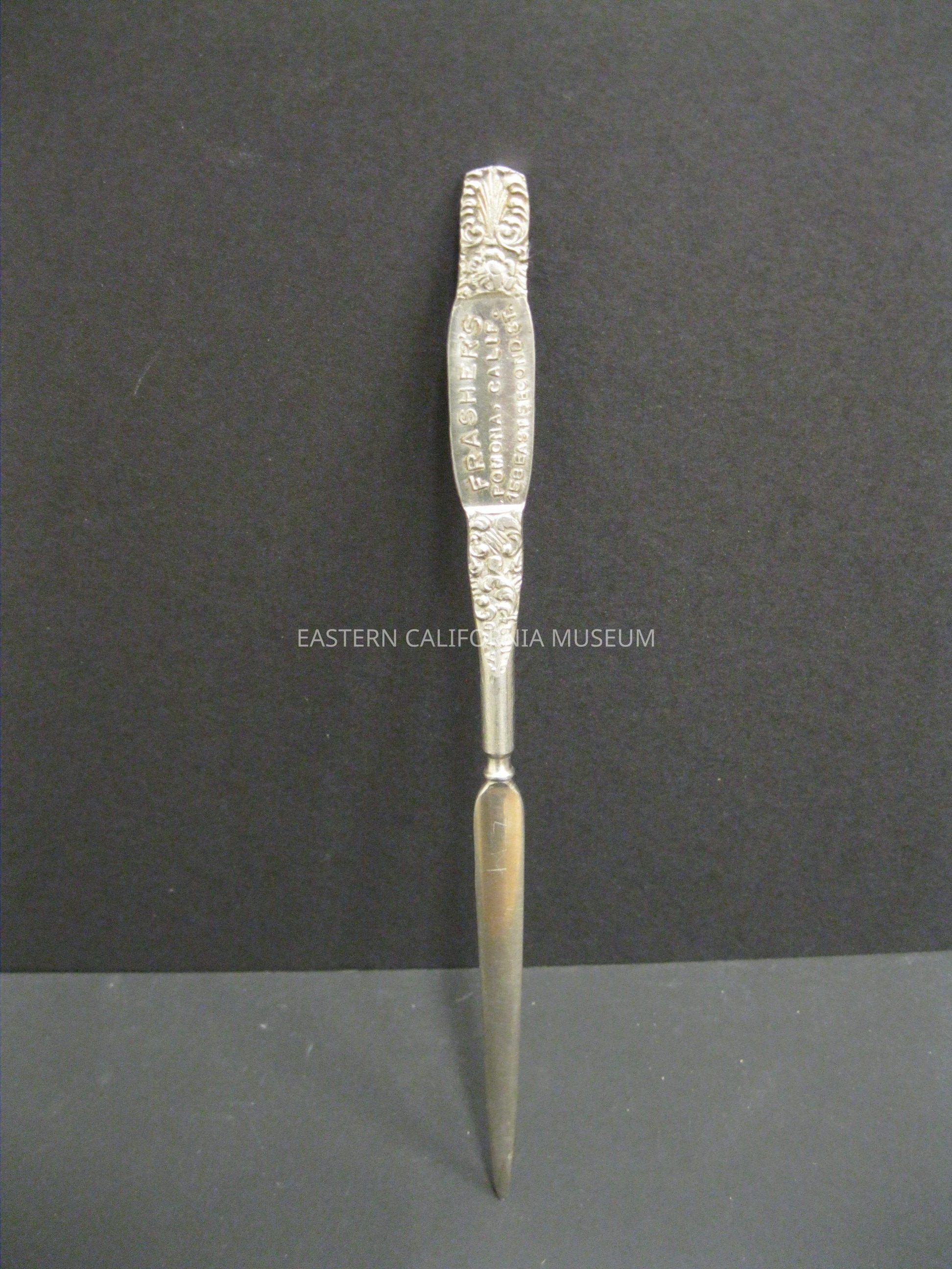 Ornate letter opener advertising Frasher's in Pomona, California at 158 E. Second St.