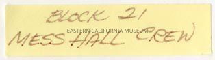 Handwritten label that says, "Block 21 Mess Hall Crew."