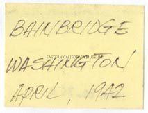 Handwritten label that says, "Bainbridge Washington April 1942."