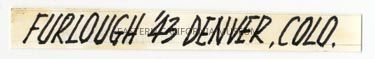 Handwritten label that says, "Furlough '43 Denver, Colo."