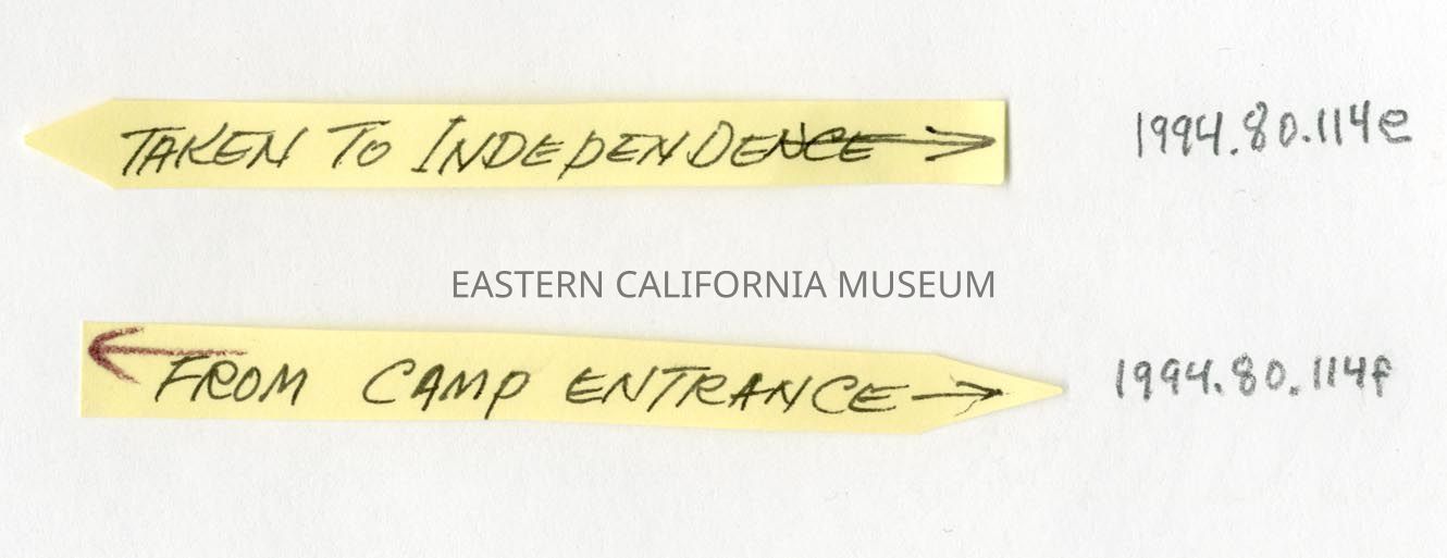 Handwritten label shaped like an arrow that says, "Taken to Independence."