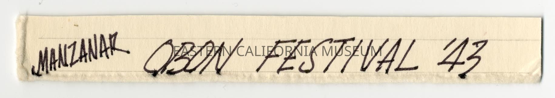 Handwritten label that says, "Manzanar Obon Festival '43."
