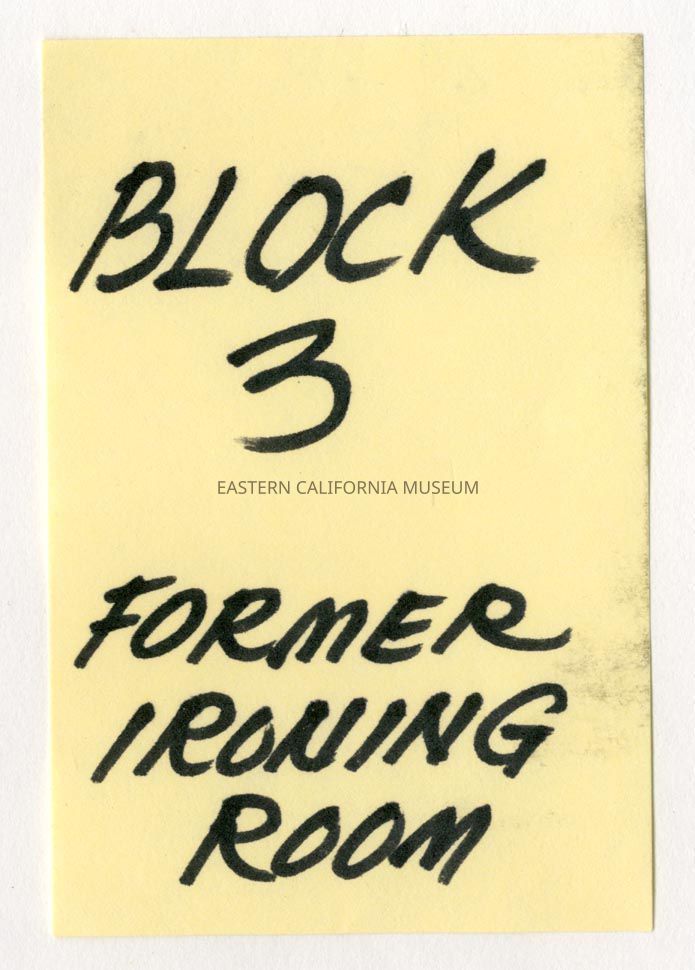 Handwritten label that says, "Block 3 Former Ironing Room."
