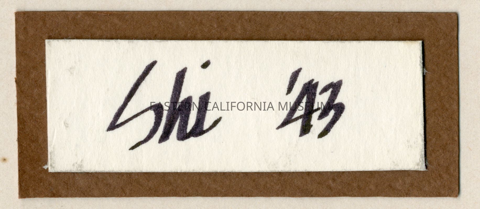 Handwritten label that says, "Shi '43." It is mounted on the mat for photo 1994.80.172.8, and is stored with the photo.