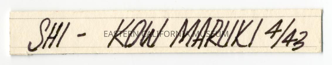 Handwritten label that says, "Shi and Know Maruki, 4/43 [April 1943]."