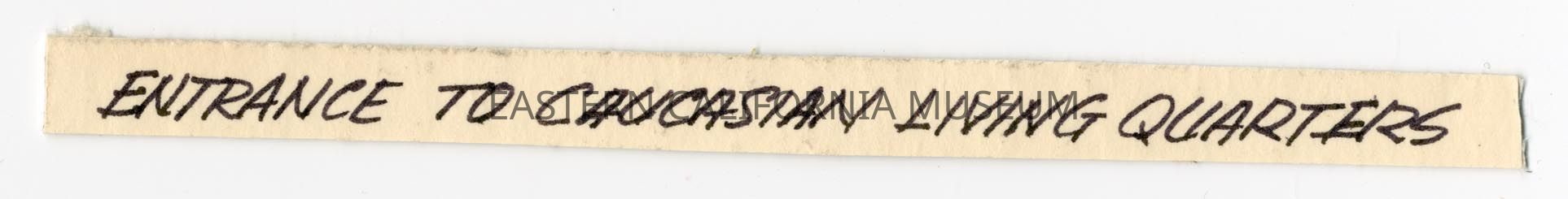Handwritten label that says, "Entrance to Caucasian Living Quarters."