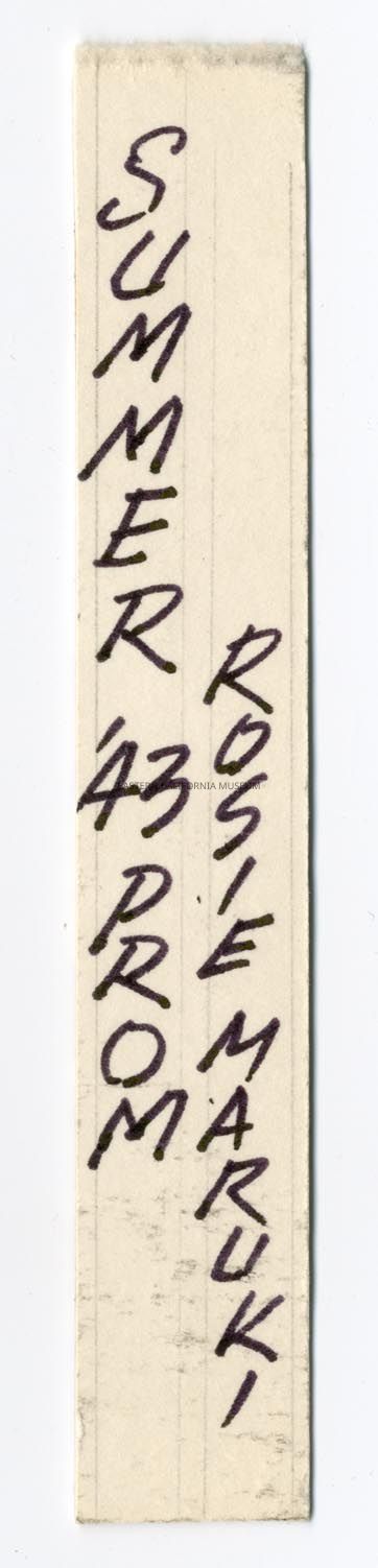 Handwritten label that says, "Summer Prom '43 Rosie Maruki."