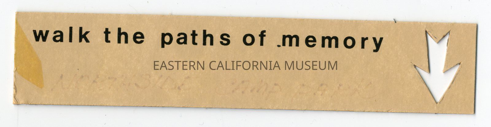 Label that says, "Walk the paths of memory." It has a downward-pointing arrow cut out on the right side.