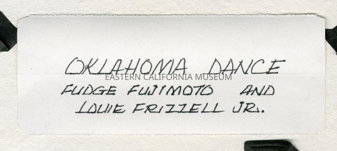 Handwritten label that says, "Oklahoma Dance. Fudge Fujimoto and Louie Frizzell Jr."