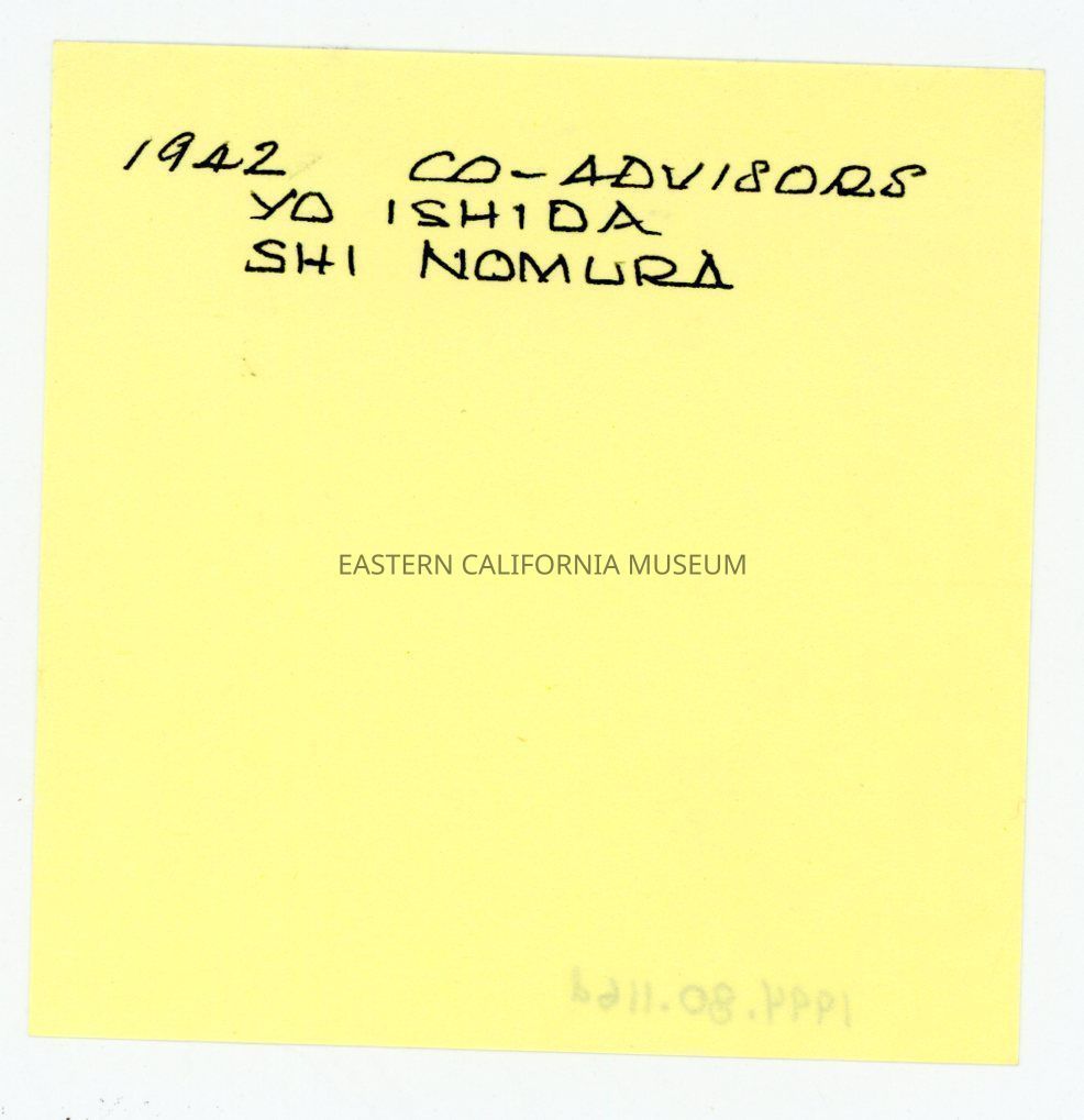 Handwritten label that says, "1942 Co-advisors Yo Ishida, Shi Nomura."