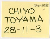 Handwritten label that says, "Chiyo Toyama 28-11-3."