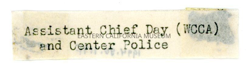Typewritten label that says, "Assistant Chief Day (WCCA) and Center Police."