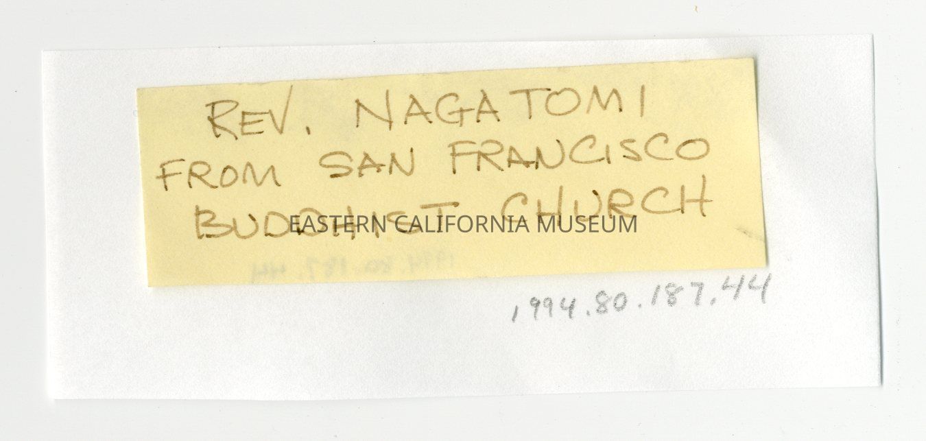 Handwritten label that says, "Rev. Nagatomi from San Francisco Buddhist Church."