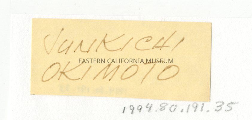 Handwritten label that says, "Junkichi Okimoto."