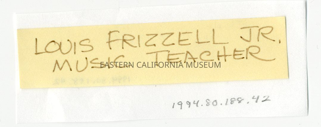 Handwritten label that says, "Louis Frizzell Jr., Music Teacher."