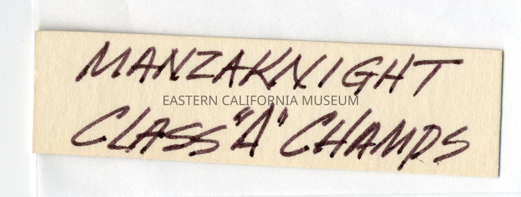 Handwritten label that says, "Manzaknight Class 'A' Champs."