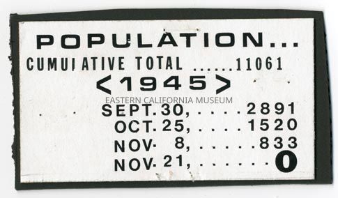 Label that says, "Population...Cumulative total...11,061 <1945> Sept. 30...2891 / Oct. 25...1520 / Nov. 8...833 / Nov. 21...0."