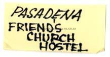 Handwritten label that says, "Pasadena Friend's Church Hostel."