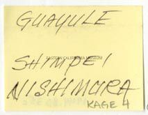 Handwritten label that says, "Guayule Shimpei Nishimura."