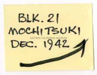 Handwritten label that says, "Blk. 21 Mochi Tsuki Dec. 1942."