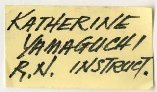 Handwritten label that says, "Katherine Yamaguchi R.N. Instruct."
