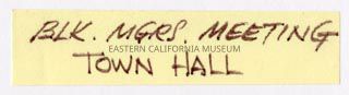 Handwritten label that says, "Blk. Mgrs. Meeting Town Hall."
