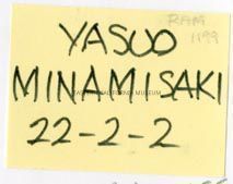 Handwritten label that says, "Yasuo Minamisaki 22-2-2."